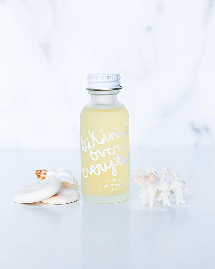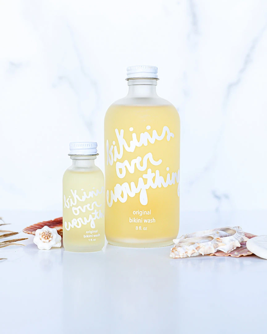 BIKINIS OVER EVERYTHING 1 oz bikini wash with all-natural gardenia fragrance. We encourage our babes to recycle and reuse our packaging. All bottles are refillable and all shipping material can be recycled.