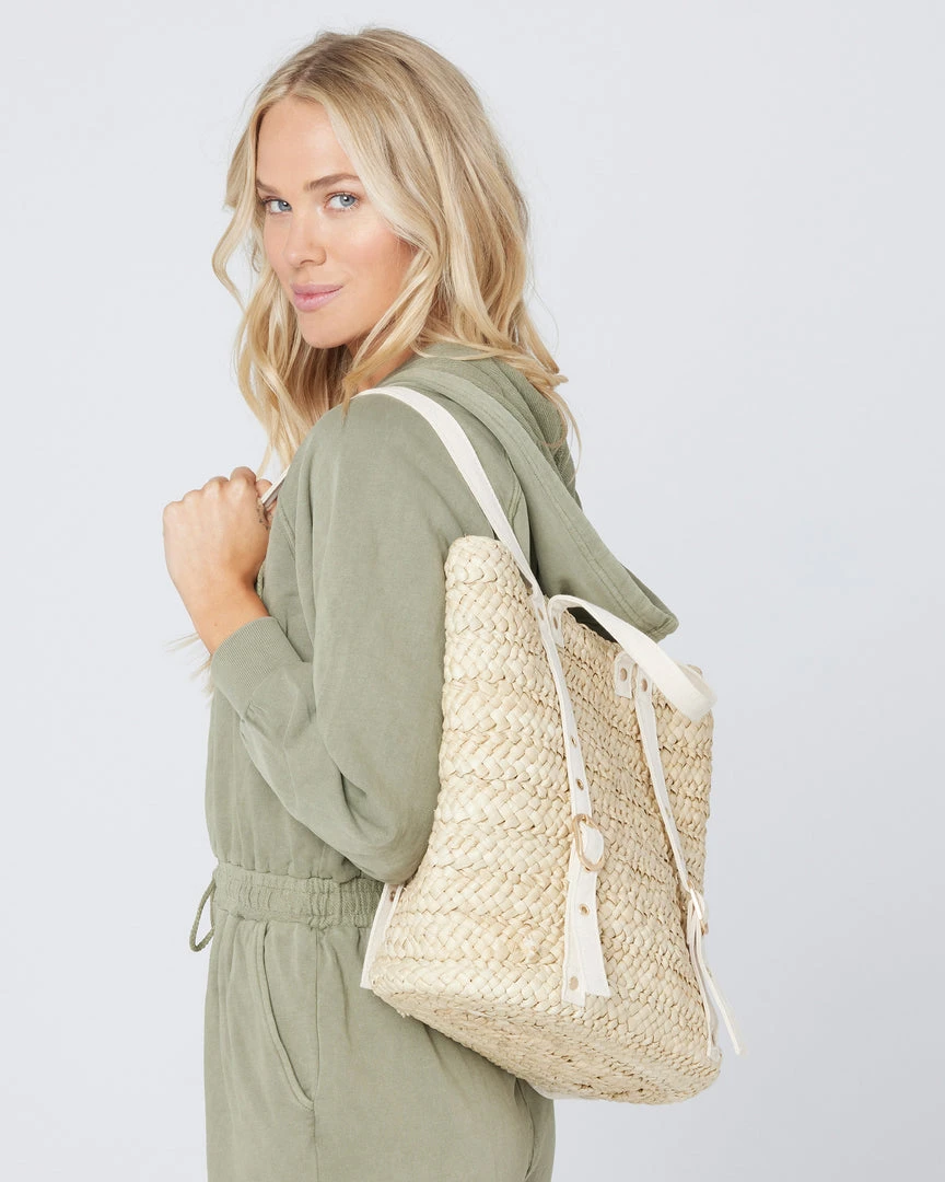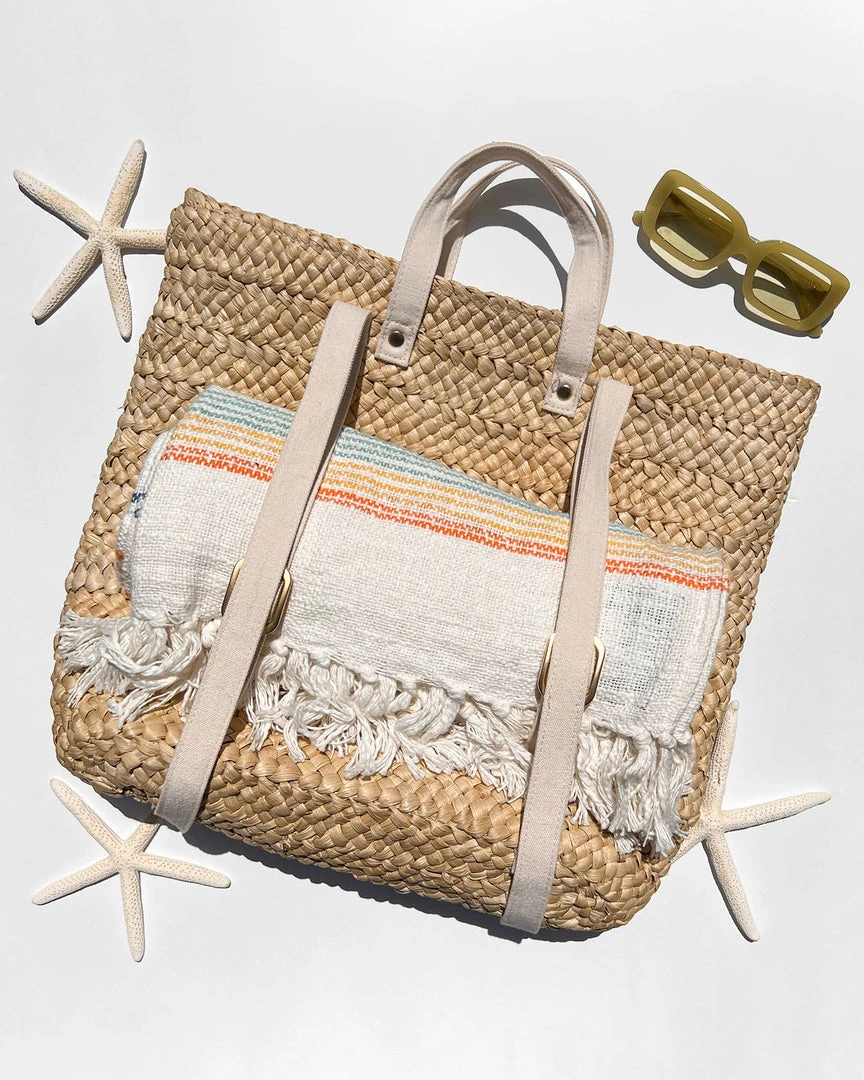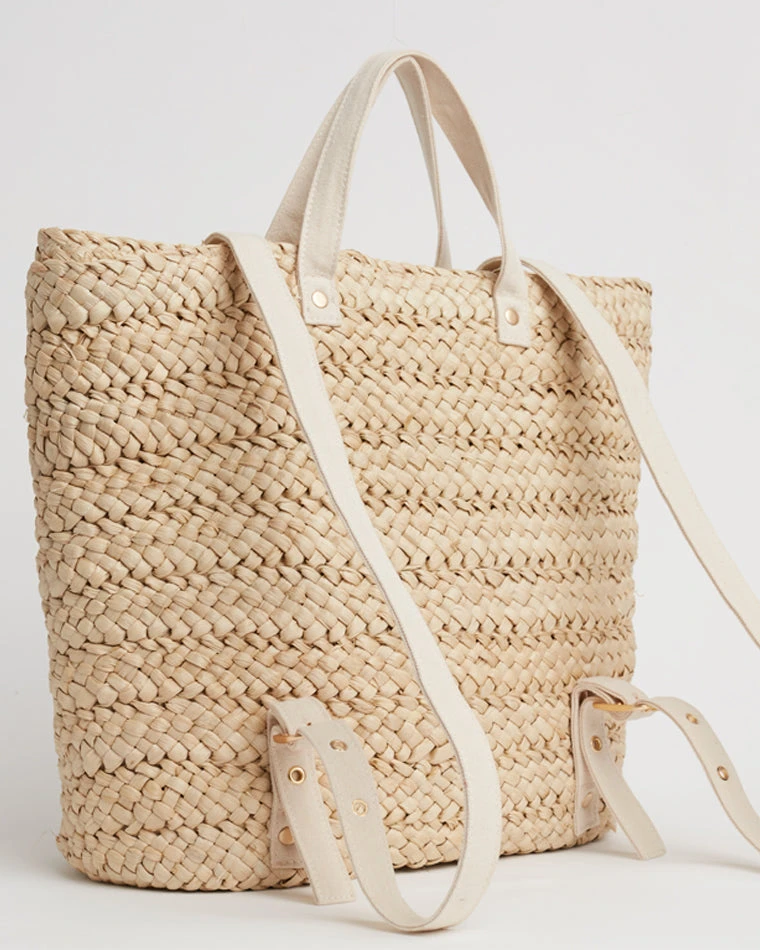 Finally, a commuter companion that carries it all! From farmers market finds to beach bound essentials, our straw tote-turned-backpack keeps everything beautifully intact from the canvas, towel bearing straps on the outside to drawcord closure inside.
