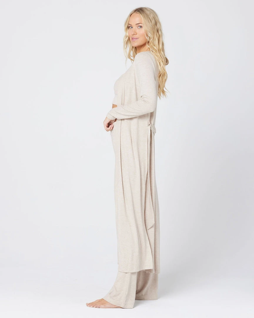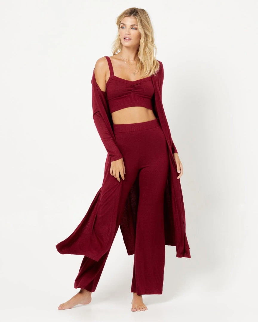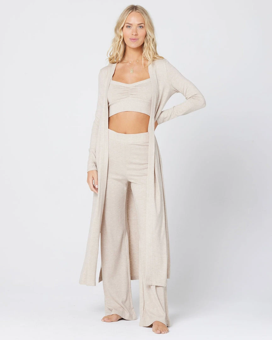 Putting on the Audrey Duster is basically like draping yourself in a cloud, but maybe even better. This cozy long-line knit cardigan features an open front with a self-tie waist and flowy side slits. Toss it on during those chilly beach nights, or even pair it with the matching Rosie Top + Adelyn Pant for ultimate cozy vibes.