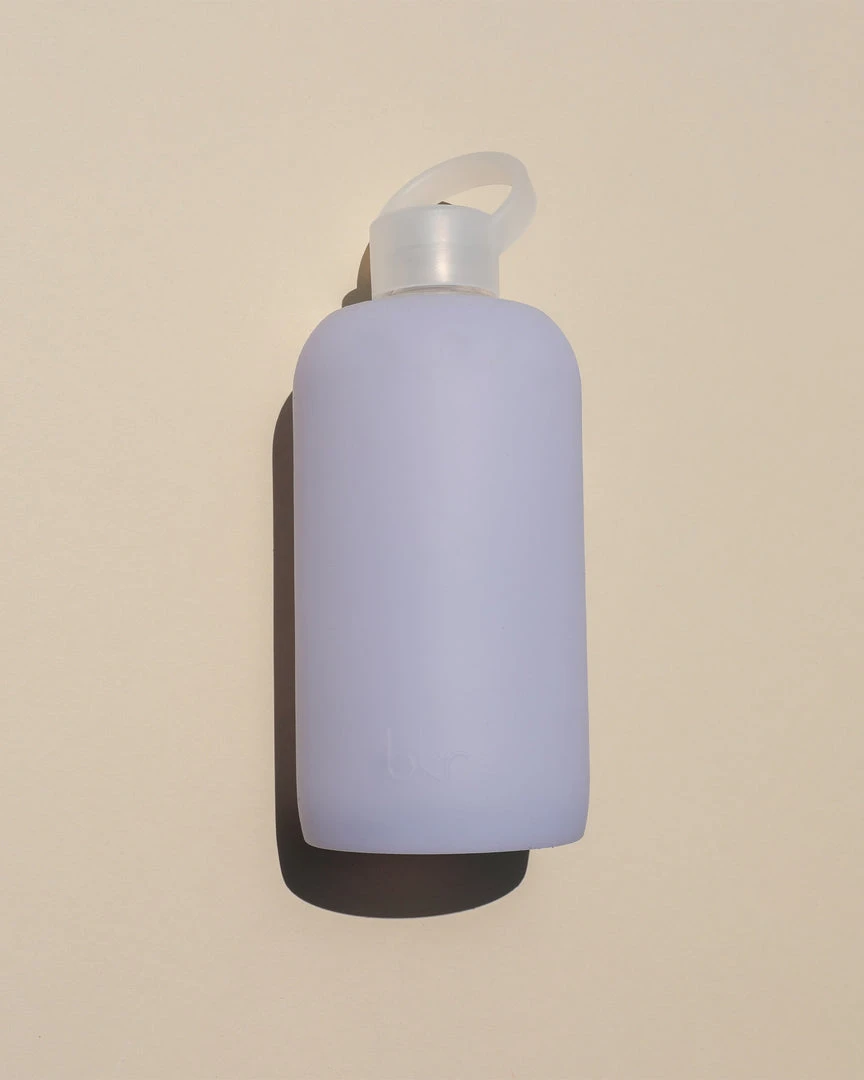 - Bottle: glass + silicone. BPA-free, phthalate-free, fits most cup holders.