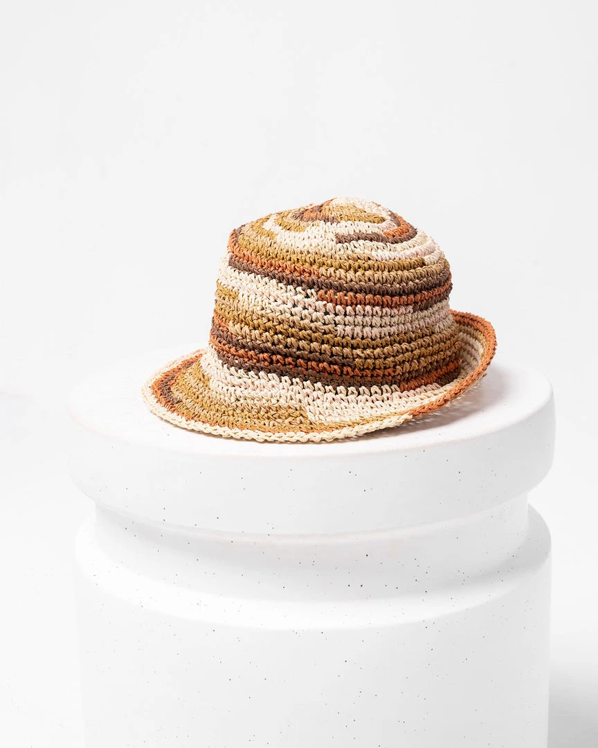 Whether you’re beaching it or brunching it, the Brie Bucket Hat has got you covered. With a rounded crown and multicolored crocheted texture, this is the perfect daytime accessory for any activity.