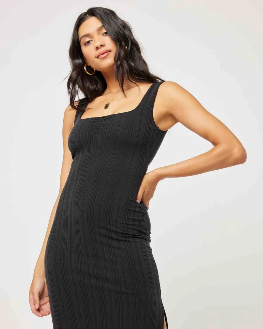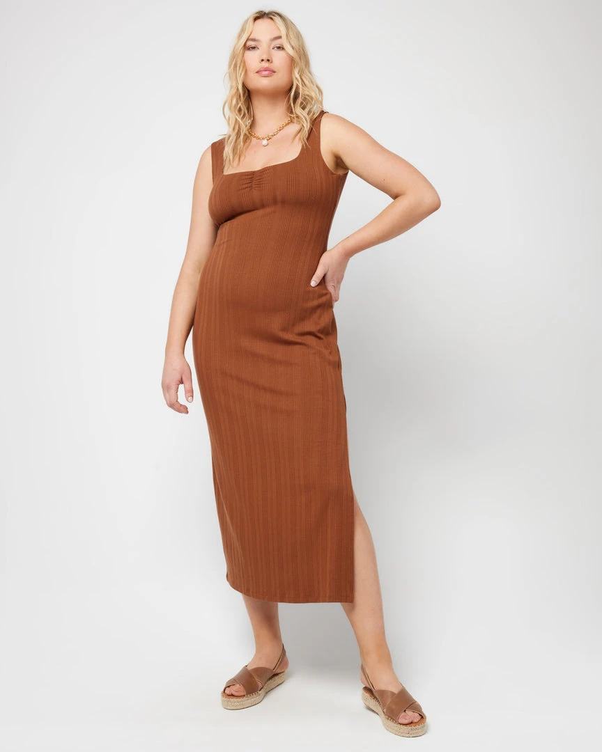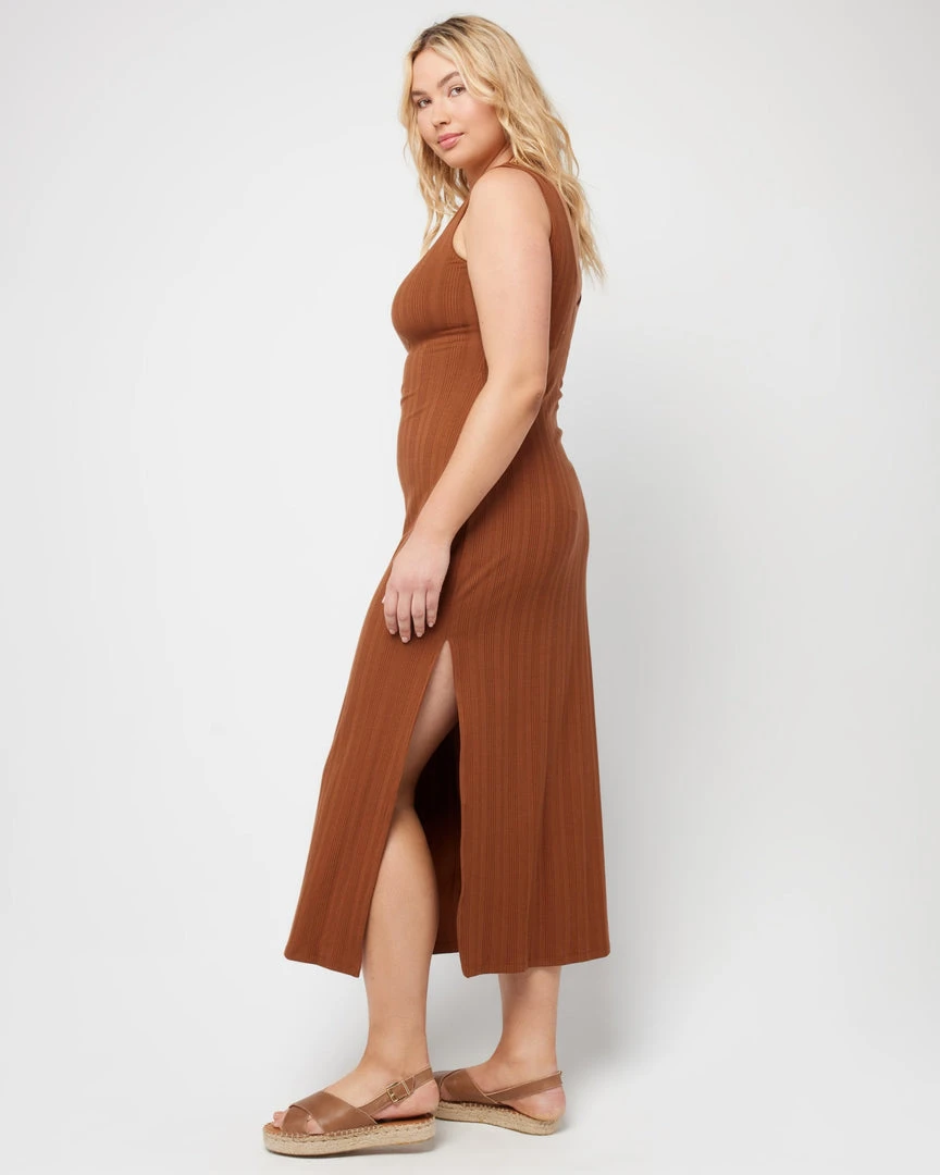 Going from day to night has never been more seamless (or comfy) than in the Celine Dress. This longer midi length ribbed dress hits at the ankle and features a sweetheart neckline with center front shirring and a low back, wide shoulder straps and shelf bra. A back slit allows for more movement within this slim fitting silhouette.