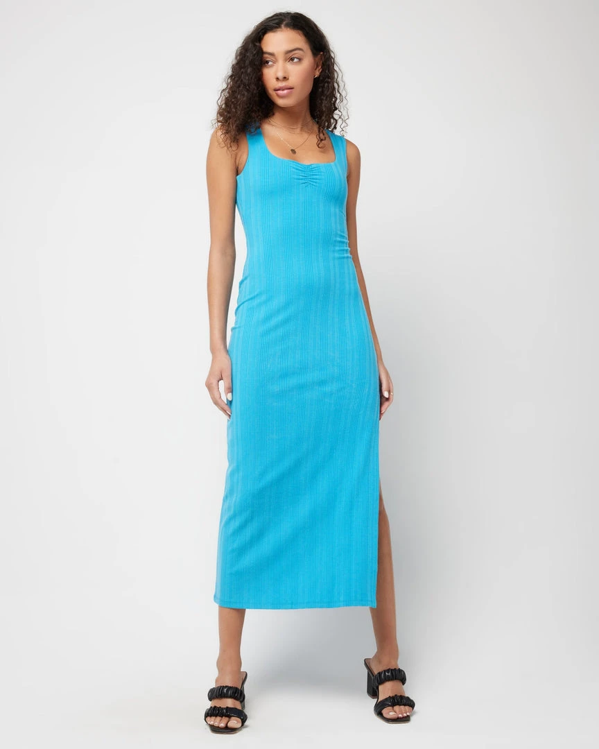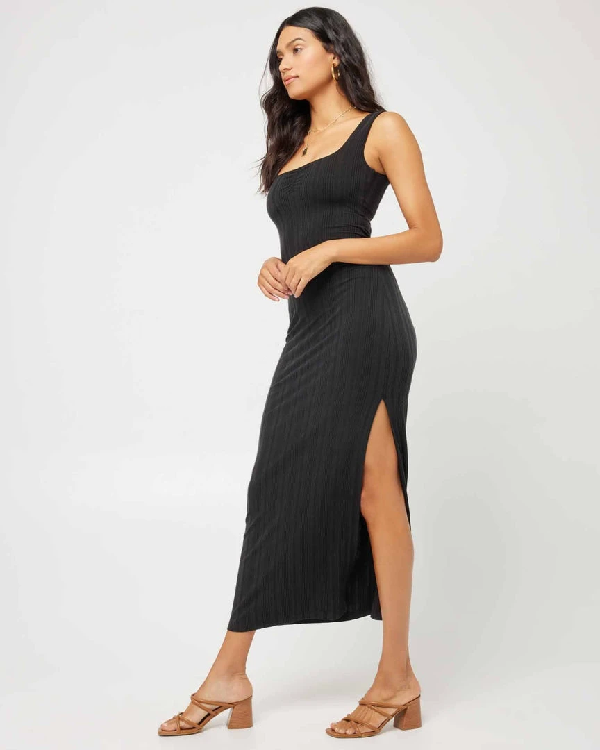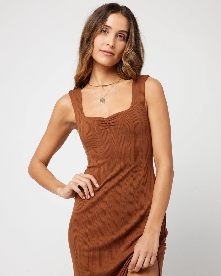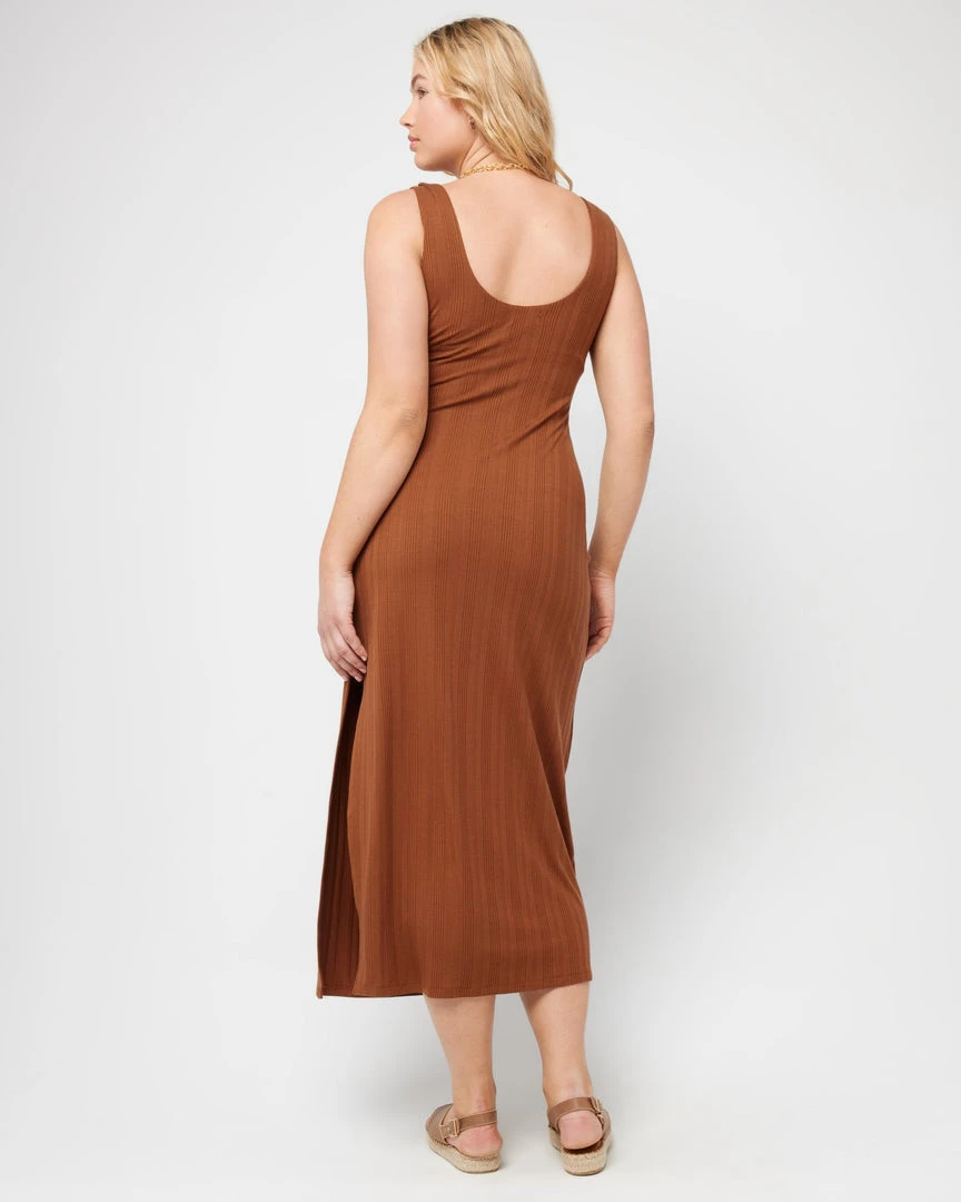 Going from day to night has never been more seamless (or comfy) than in the Celine Dress. This longer midi length ribbed dress hits at the ankle and features a sweetheart neckline with center front shirring and a low back, wide shoulder straps and shelf bra. A back slit allows for more movement within this slim fitting silhouette.