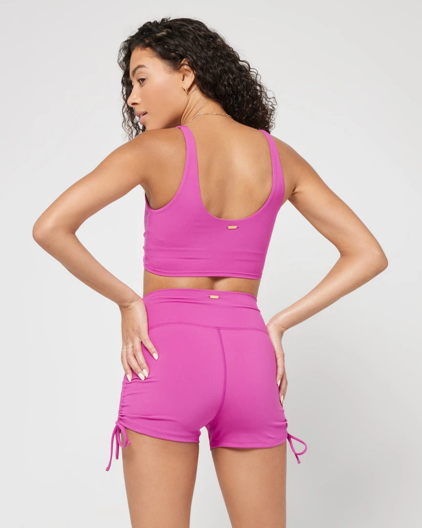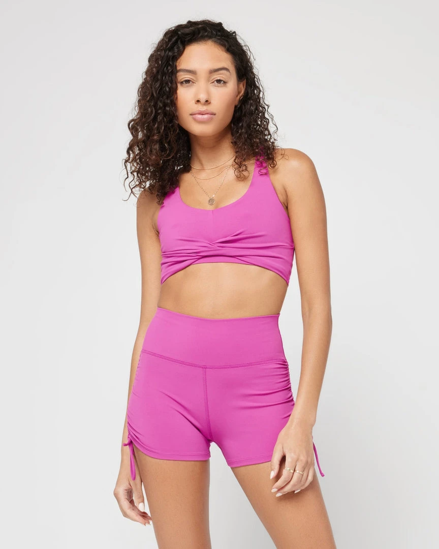 These high-waisted shorts can take you anywhere. Functional ruching and adjustable side-ties partner up for a customizable look with the Channing short.