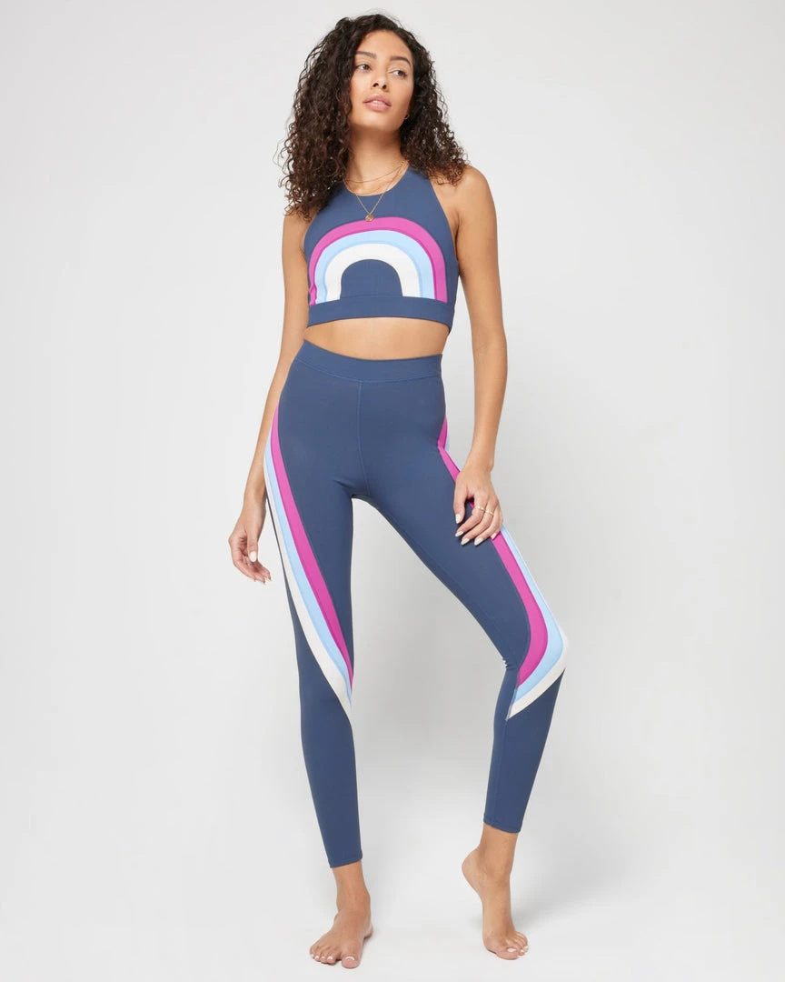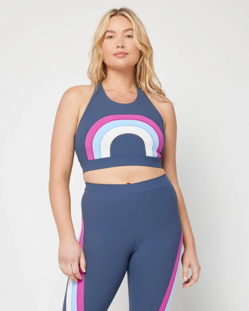 Here comes the sun… Our Chasing Rainbows Top will have you feeling your best. A high neck top and back cutout in our signature activewear fabric in slate will make any day so much brighter.