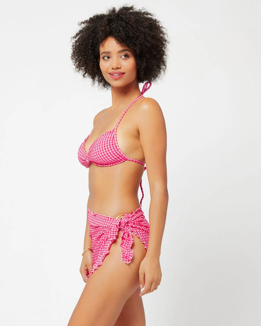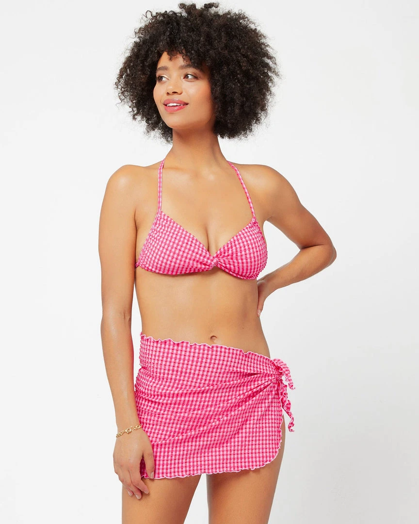 This sarong with adjustable tie is just what you need for any holiday rendezvous. With its lettuce edge and My Girl gingham textured fabric, the Cher Sarong is the perfect statement finisher.