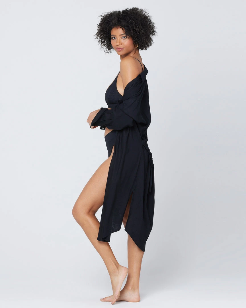 - Wear 3 ways: (1) Tied up as a top, (2) long as a dress, (3) open as a cover-up