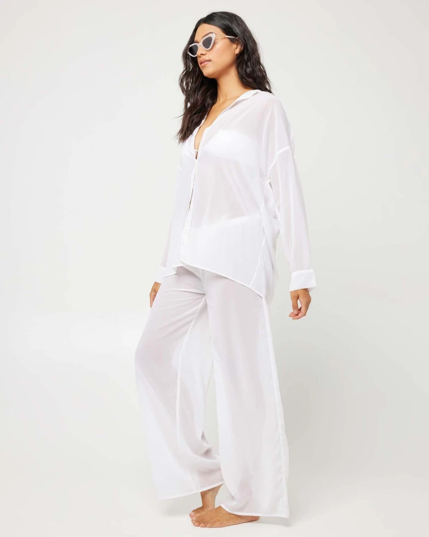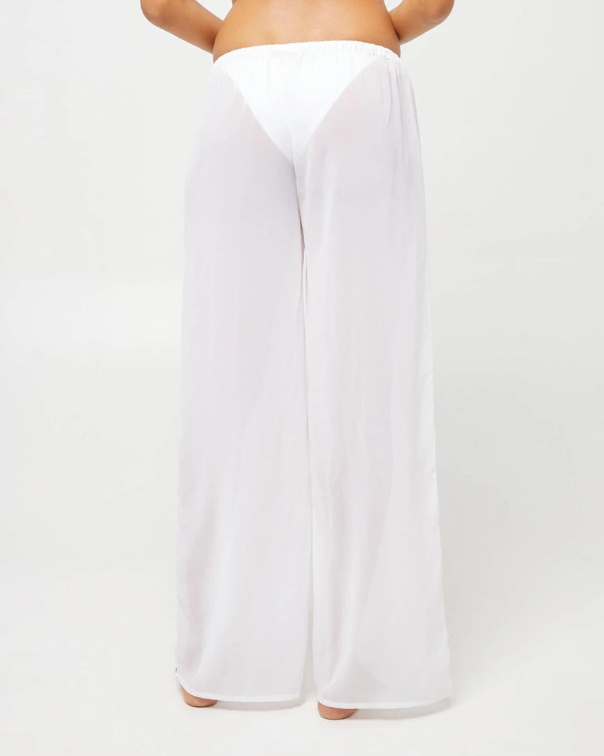 Perfect for a day stroll on the beach to a night stroll to get drinks, the Catalina is an oversized pant and features an adjustable tie waistband and sheer wide leg.