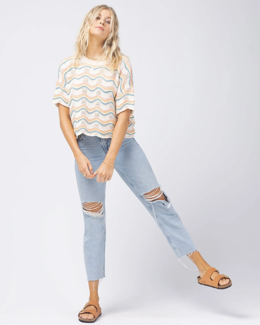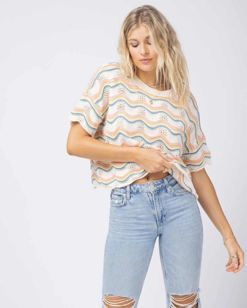 Have fun with playful knits. The Make Waves Top is an over sized boxy top with dropped shoulder and scalloped hem, and is the perfect throw on for any casual activity you’ve got planned.