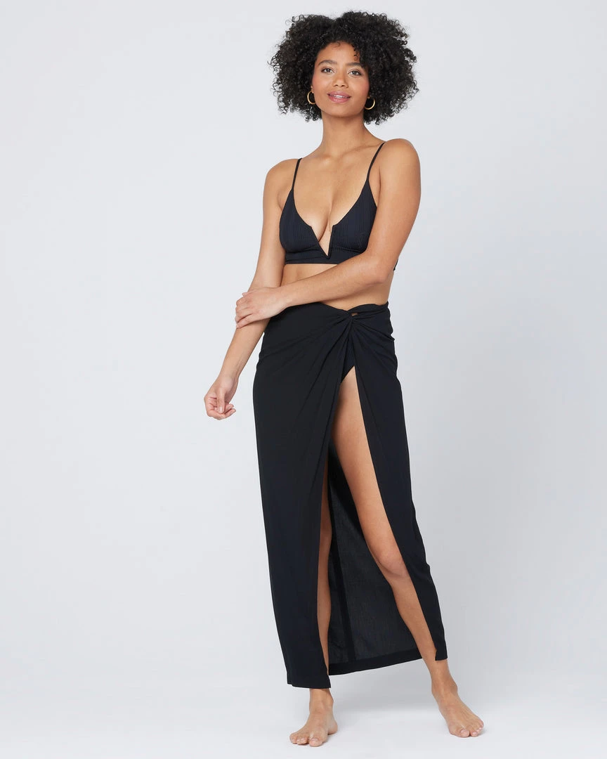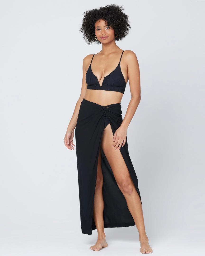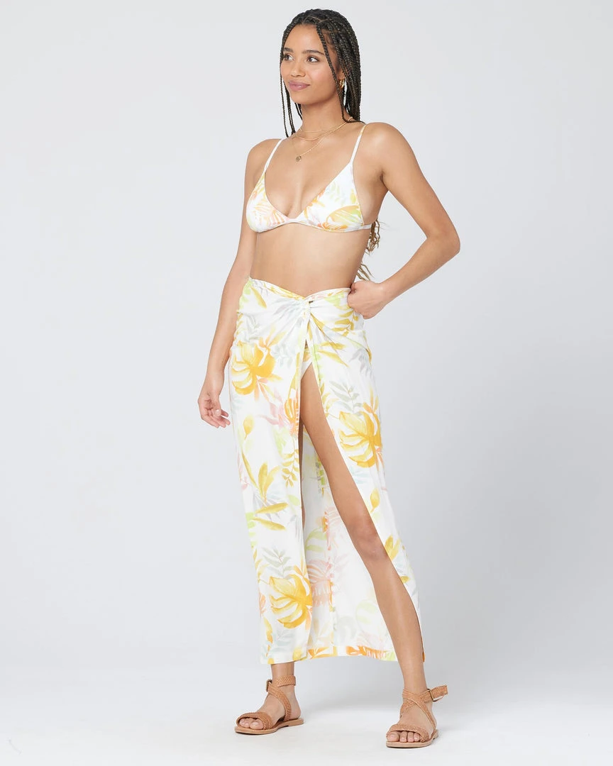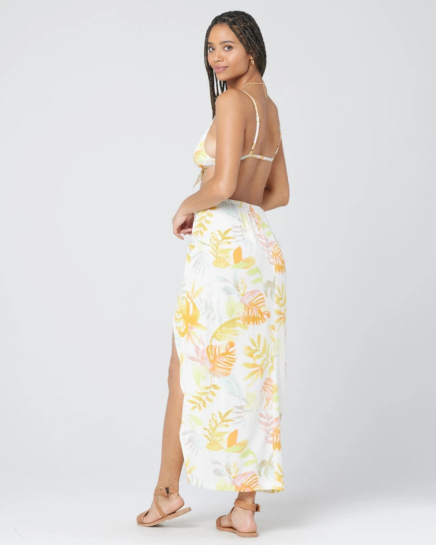 The classic sarong gets an upgrade with the Mia Cover-Up. Easy to wear and undeniably fun, this cover-up features an elastic waist and mock knotting detail.