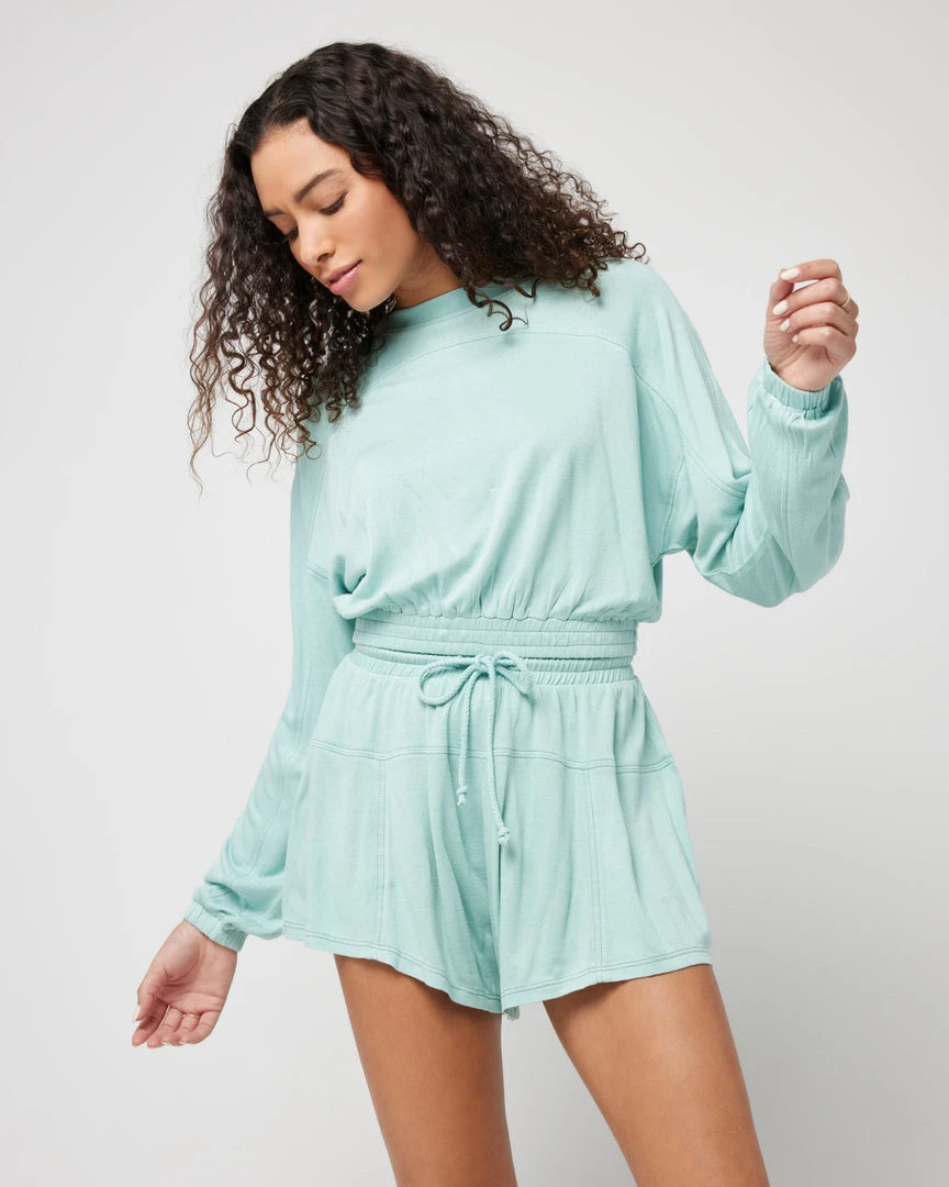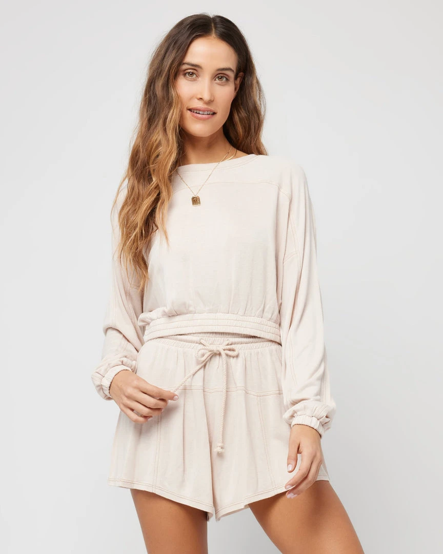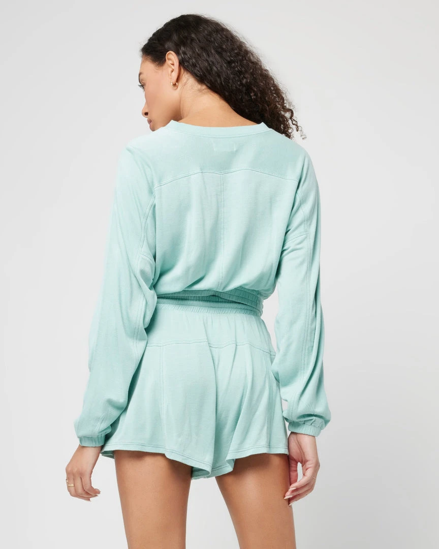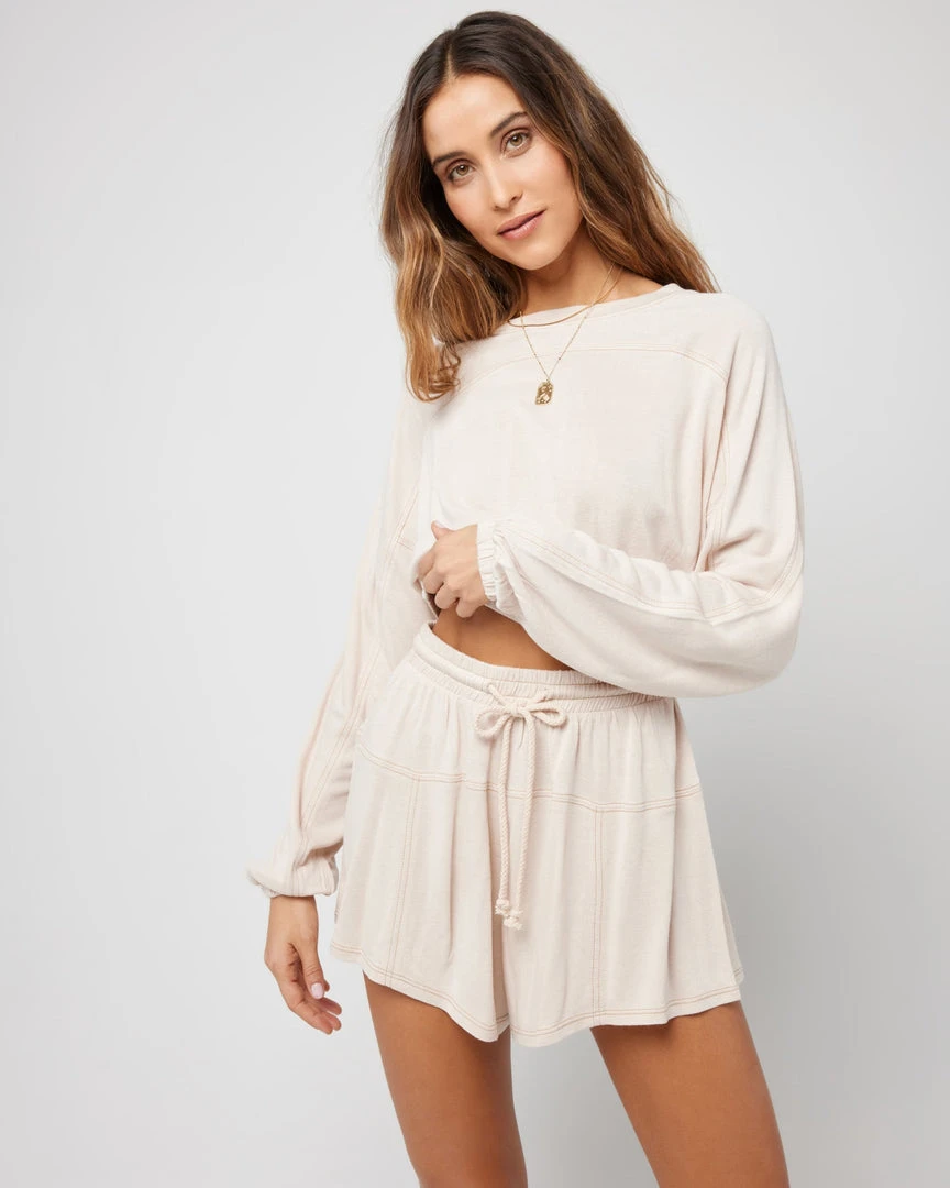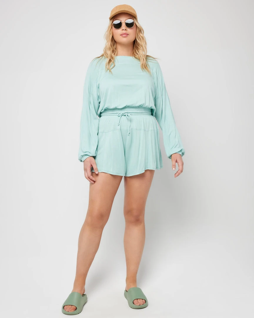 Your new summertime shorts have arrived! Circle cut to look like a skirt, pair these high waisted shorts rendered from French terry with the matching Day Tripper Pullover for a complete fun and flirty look.