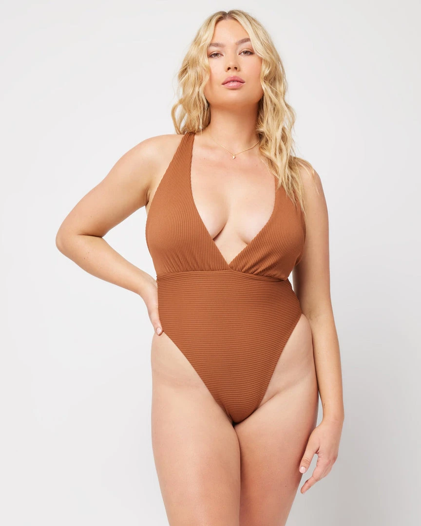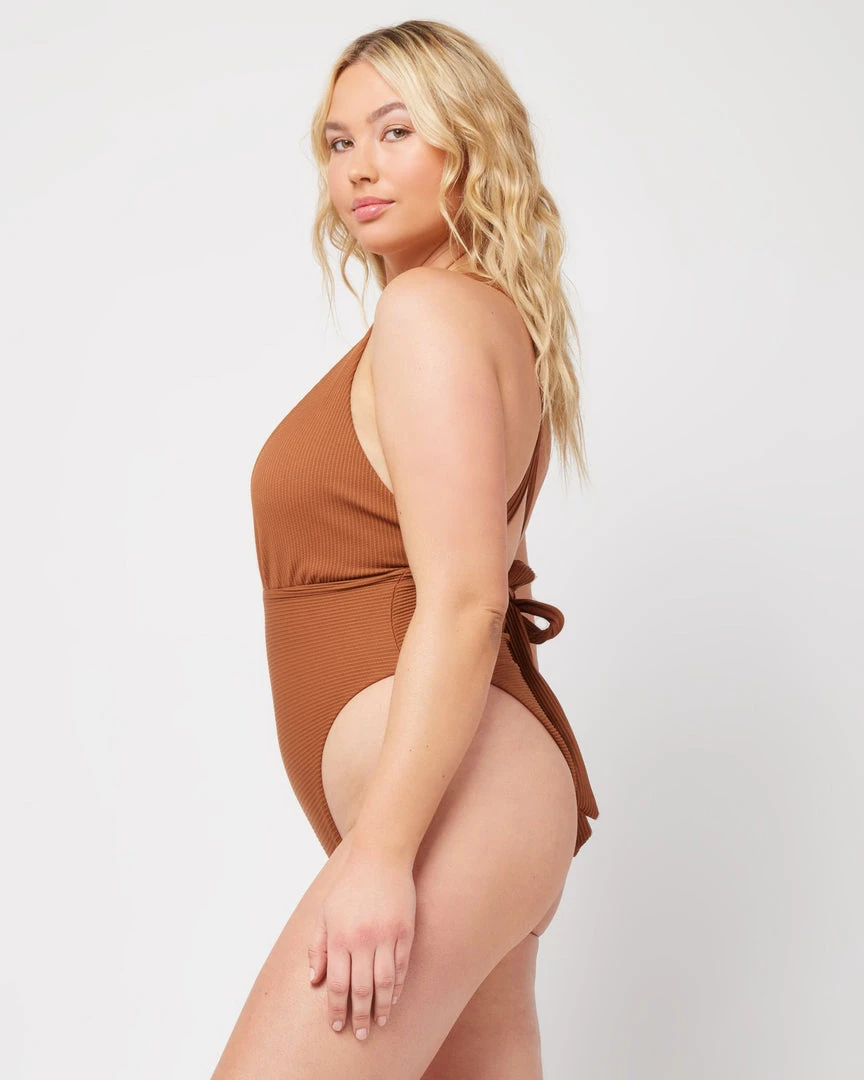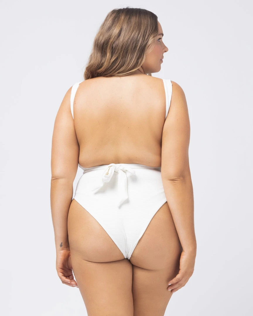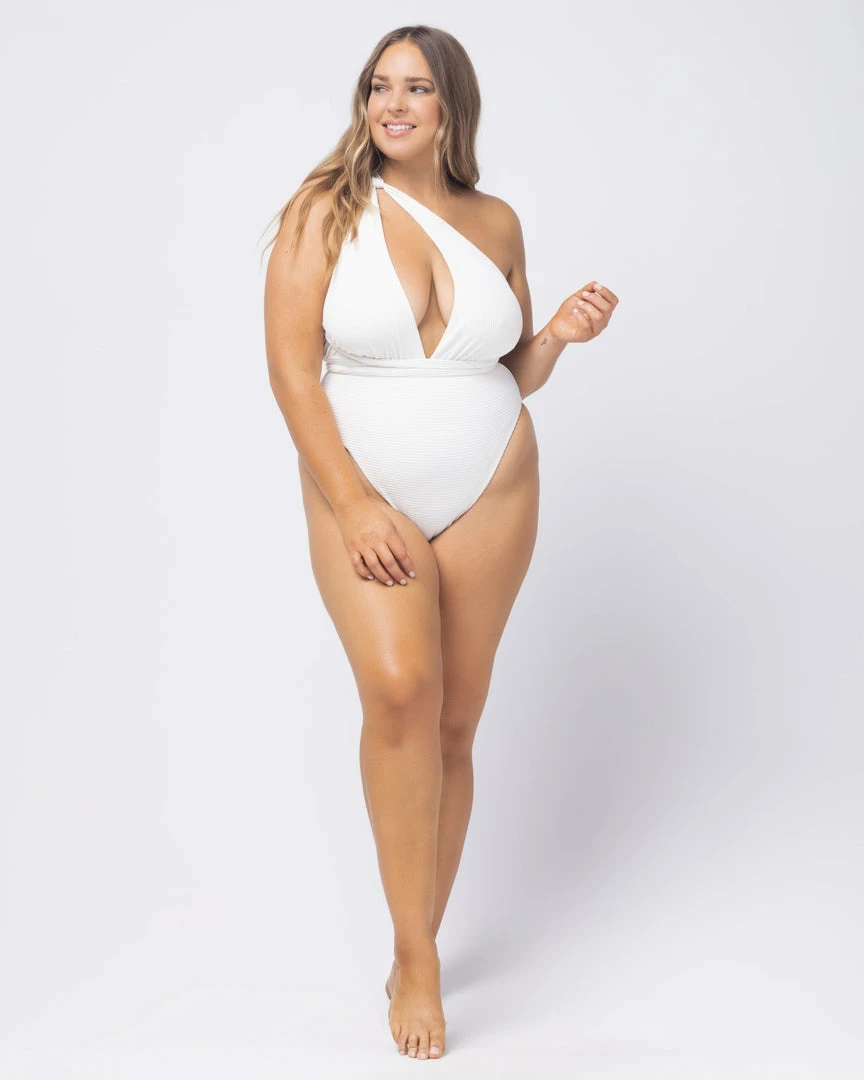 With the Allegra One Piece, the choice is yours. From it’s daring deep V-neckline to flattering high leg cut, this bodysuit is designed with extra long halter ties and can be worn multiple ways.