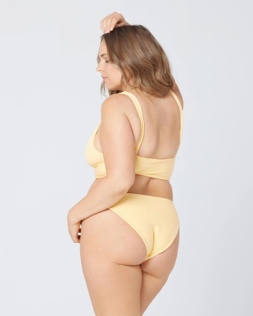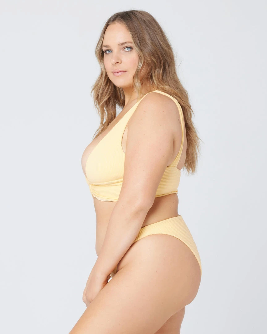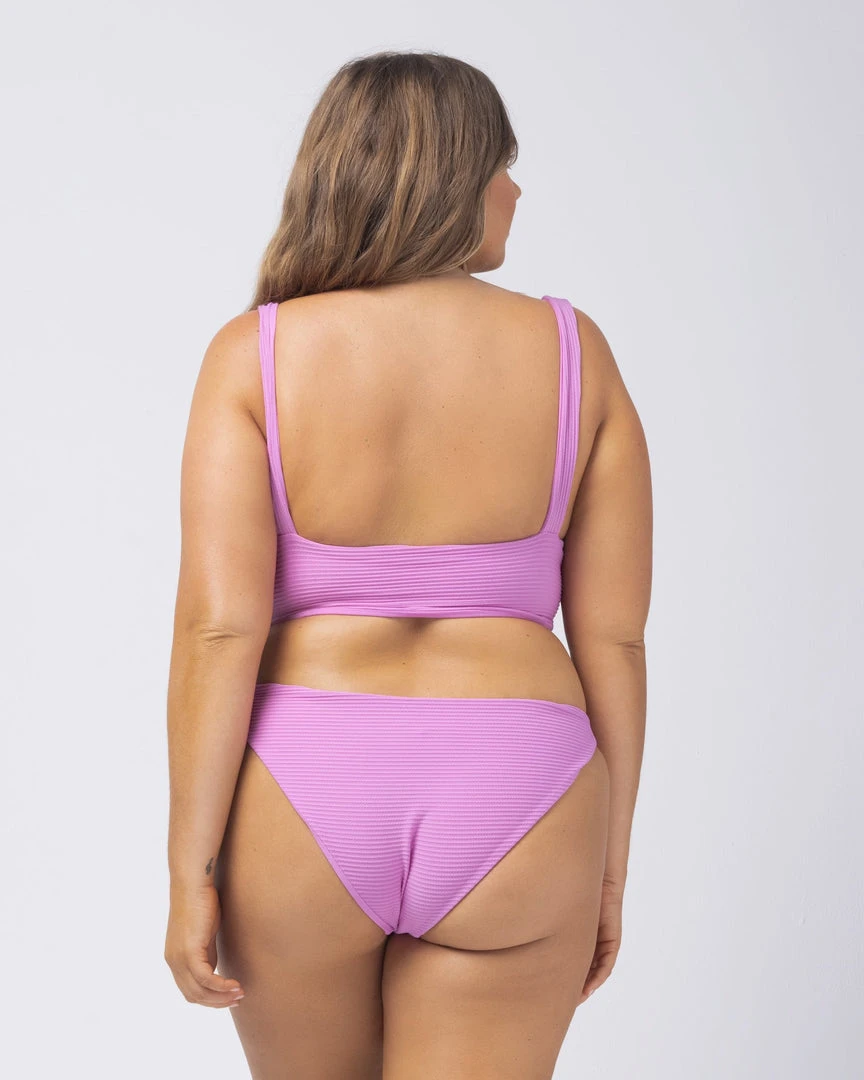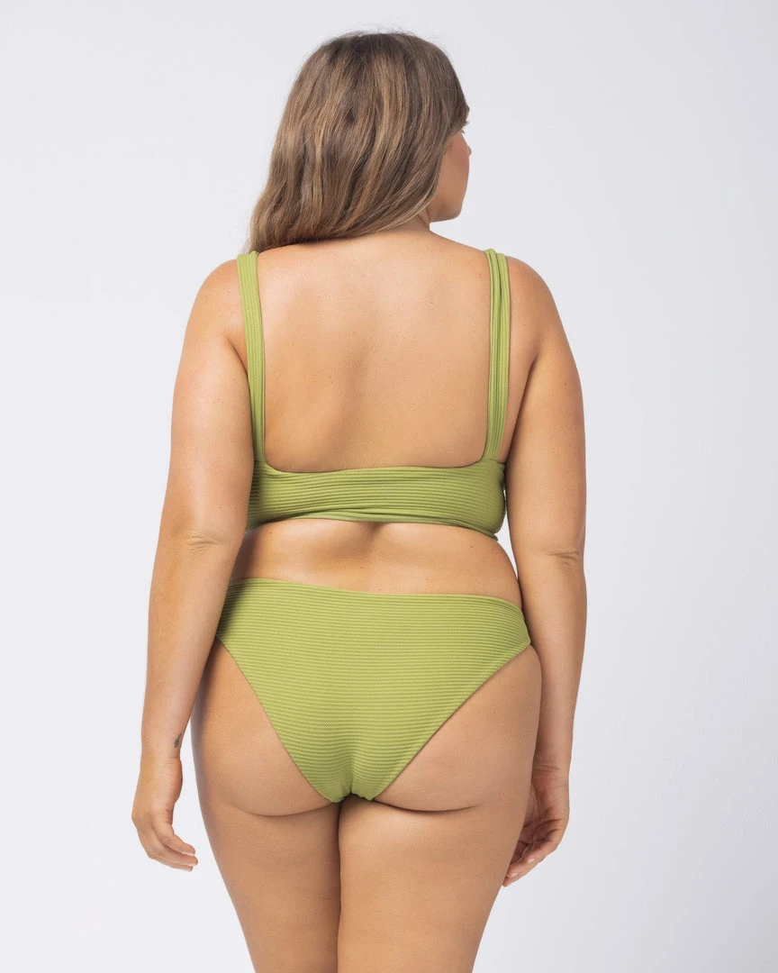 The Fisher is our newest Eco Chic bikini top made from 100% recycled materials using REPREVE® – a high quality performance fiber. This pullover style top features removable pads, ribbed eco fabric, a v-neckline, and fabric covered ring detail.