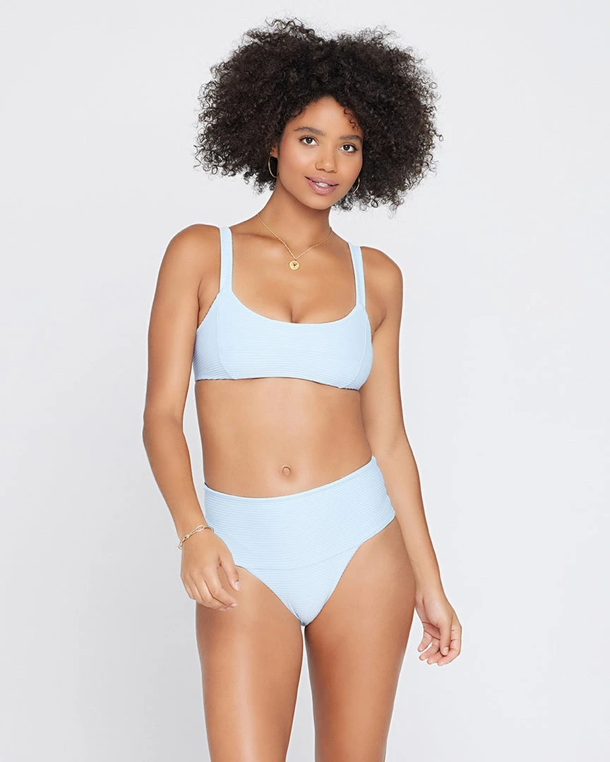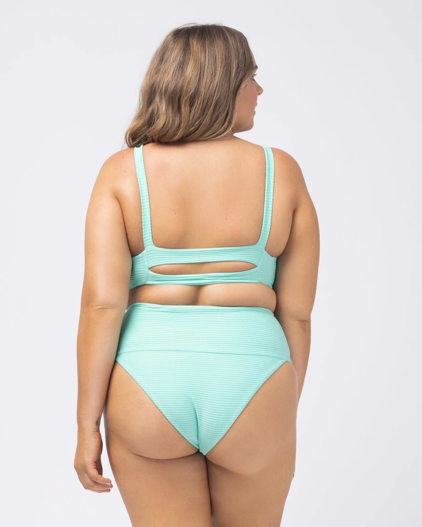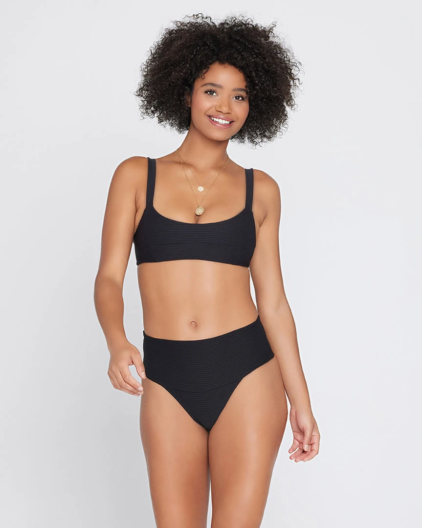 Part of our “Eco Chic Off the Grid” collection, the fiber in this pullover bikini top is made from 100% recycled materials. Using REPREVE® – A high quality performance fiber. Featuring ribbed fabric and a comfy double banded back, this is style you can feel good about.