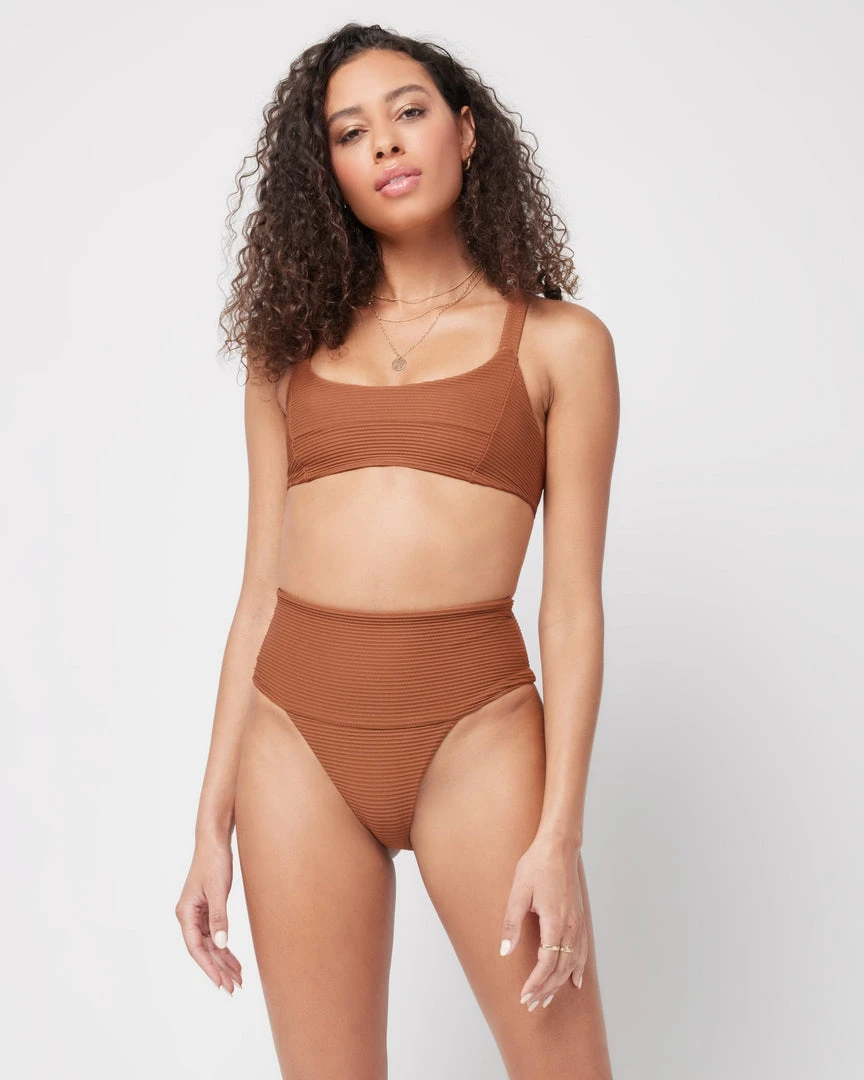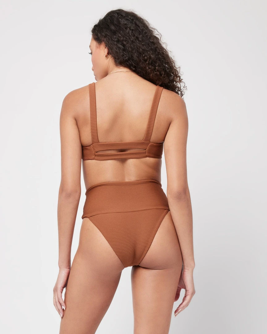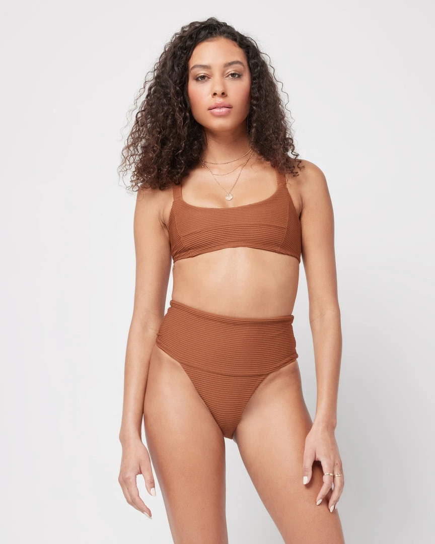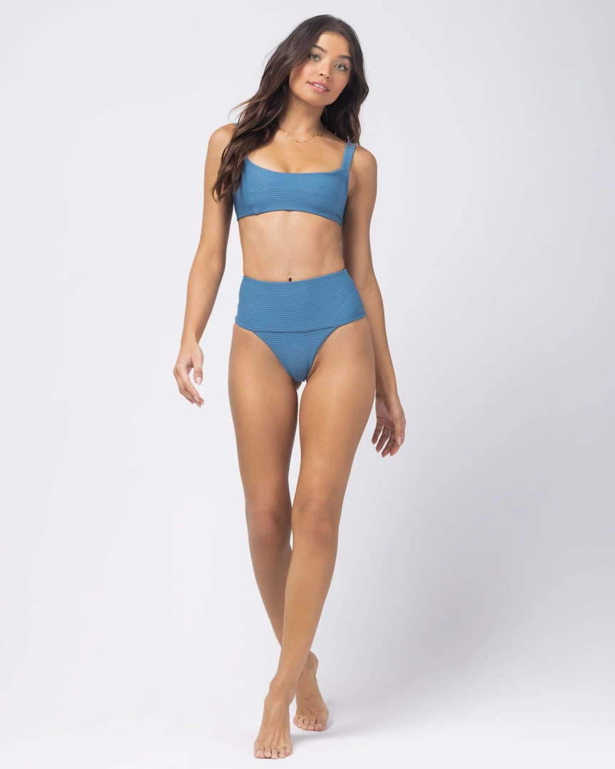 Part of our “Eco Chic Off the Grid” collection, the fiber in this pullover bikini top is made from 100% recycled materials. Using REPREVE® – A high quality performance fiber. Featuring ribbed fabric and a comfy double banded back, this is style you can feel good about.