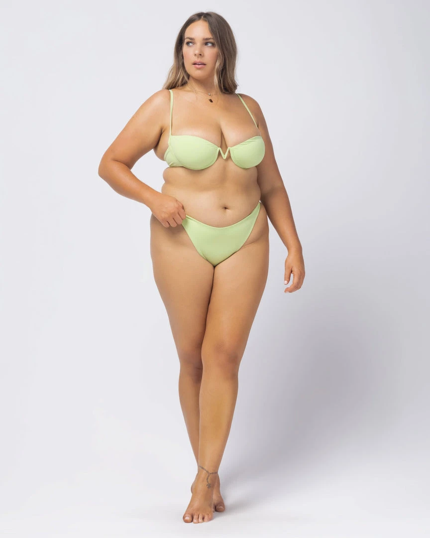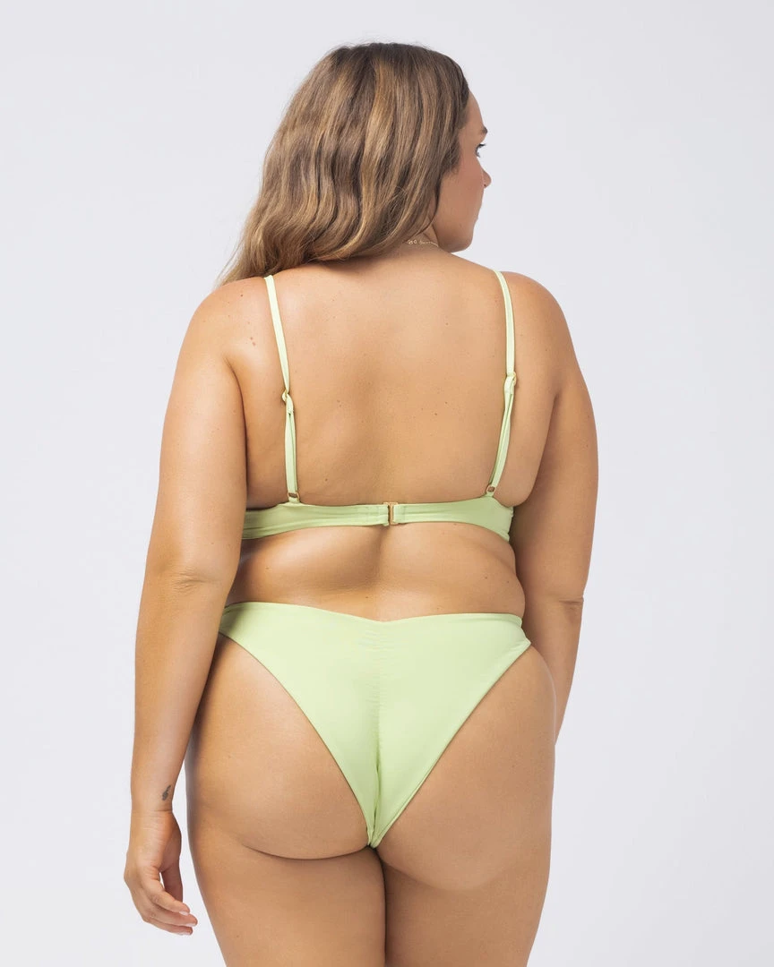 Dare to bare in the Ellie Bottom. Cut with a high leg, this bitsy bottom also features shirring at the back center seam.