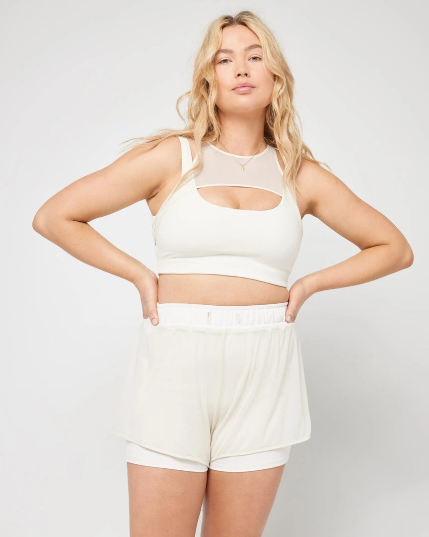 Give it all you got in the Harness Your Power Crop Top. This high-neck racerback bra has just the right amount of mesh on the front and back. Its double-layer will keep sweat away while you play.