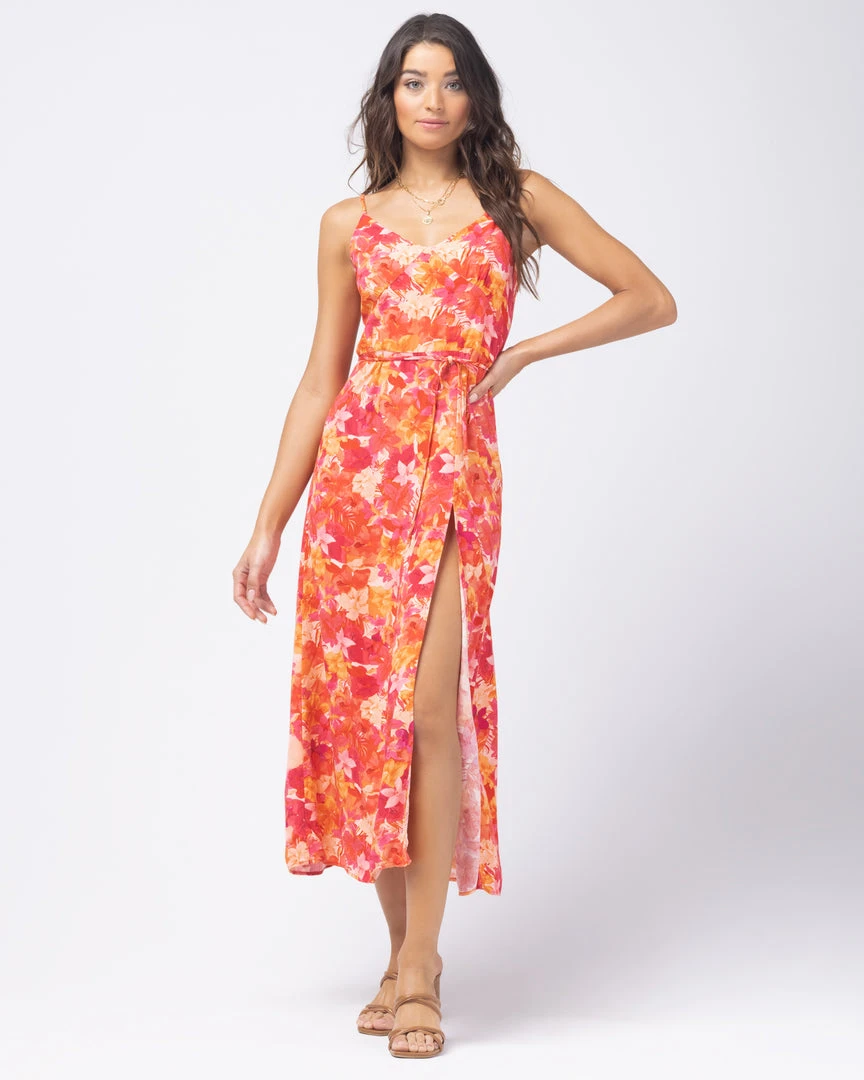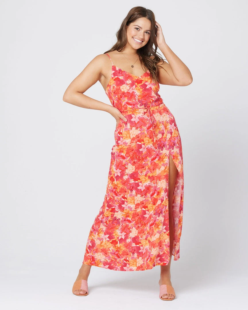 Look and feel stunning day into night with the Harper Dress. As easy to wear as it is on the eyes, this midi dress of your dreams features a seamed bodice with adjustable spaghetti straps and a side slit with a tie at the waist.