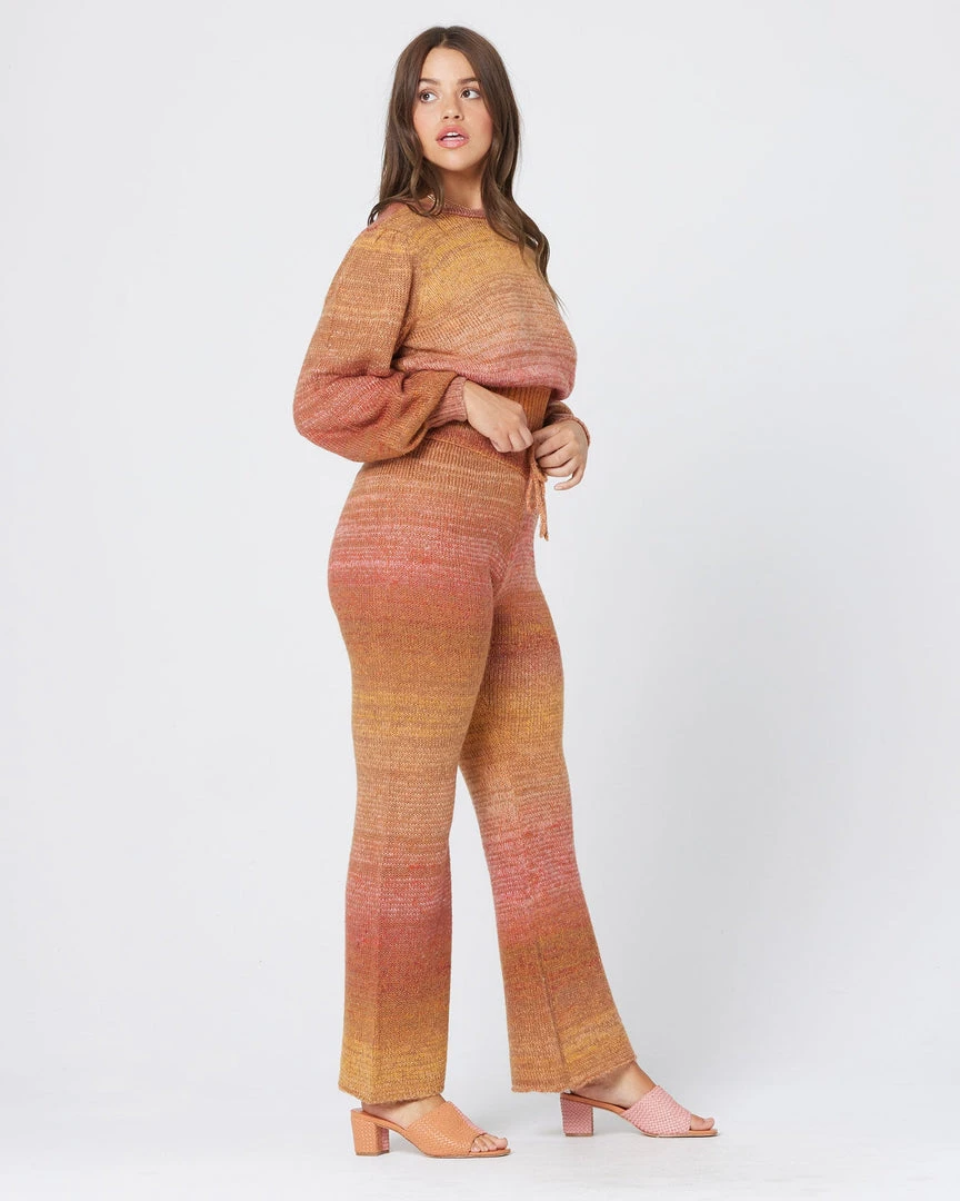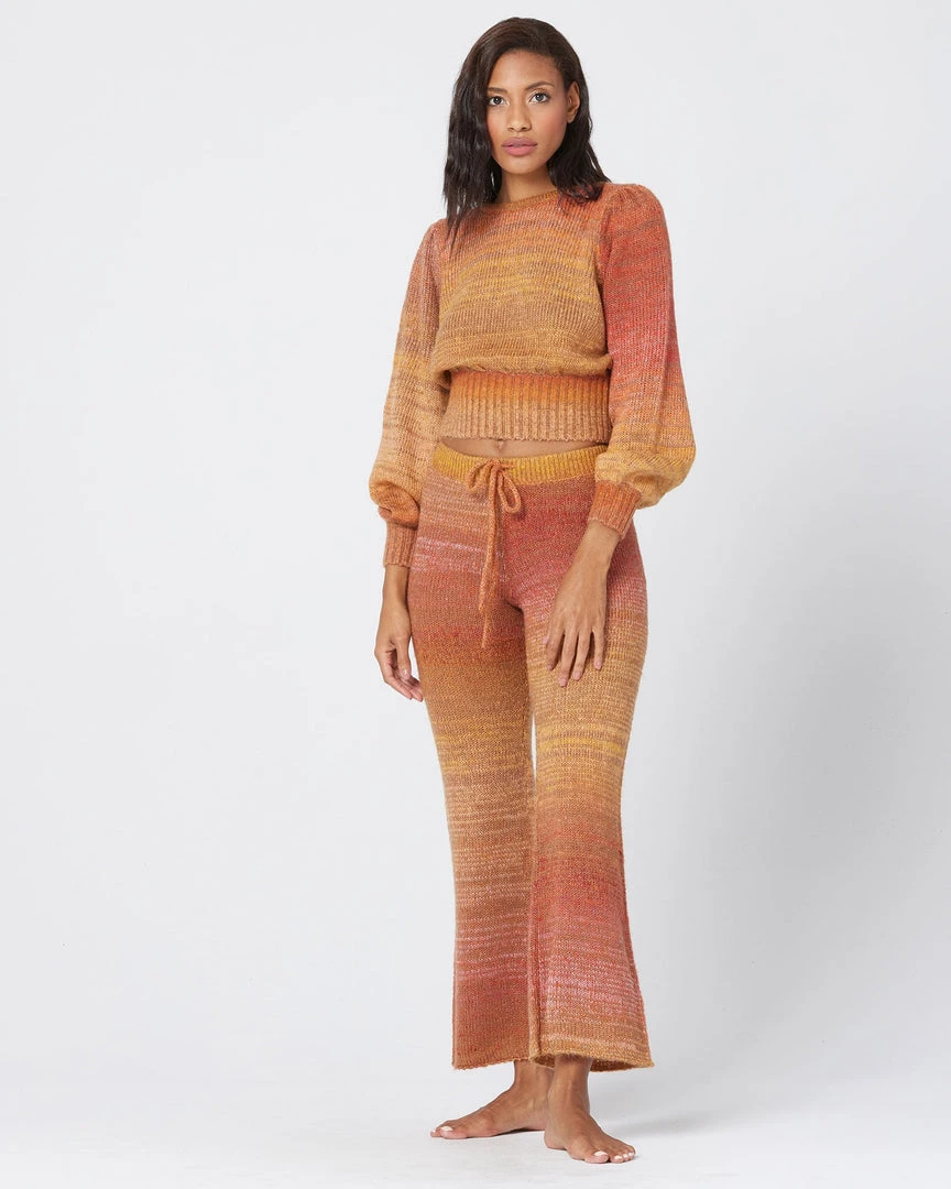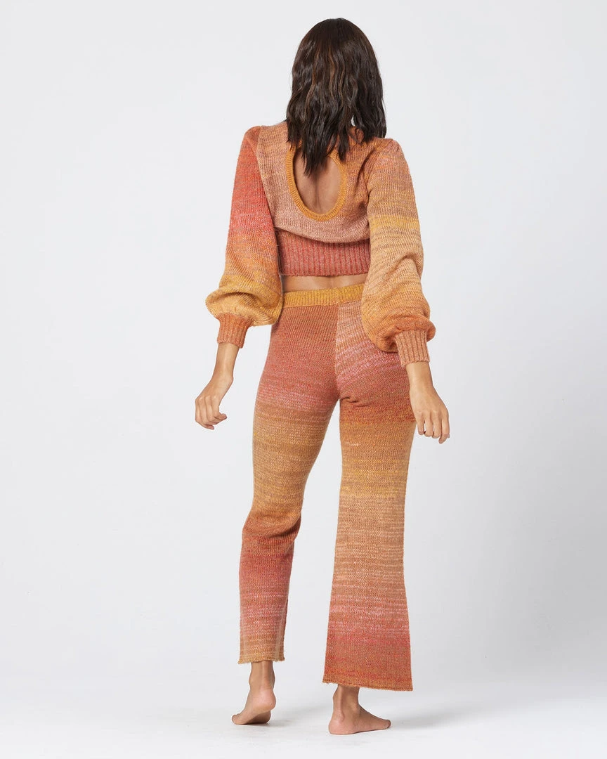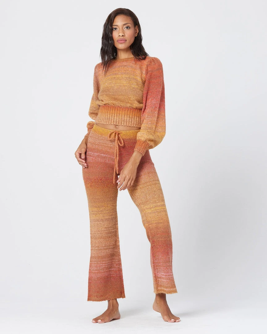 We’re taking it back to the 70s with the Juniper Sweater. This cropped knit was designed in a super soft sunset-stripe fabric and features an open keyhole back, full-length balloon sleeves, and a stretchy ribbed cuff and hem. Pair with the matching Laurel Pant for the ultimate throwback vibe..