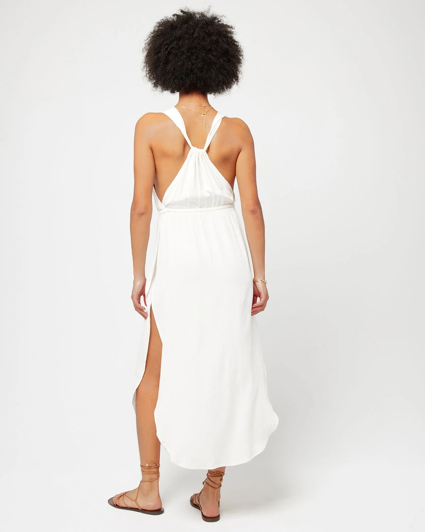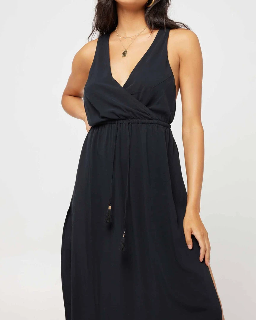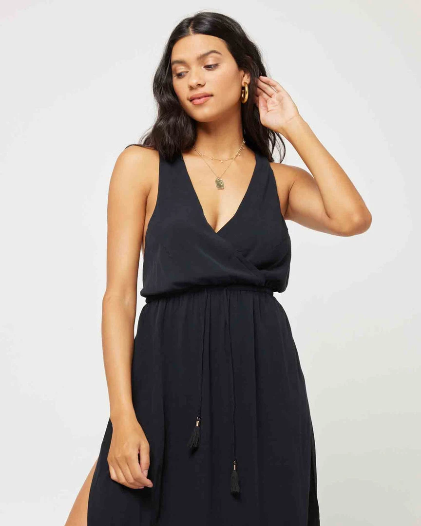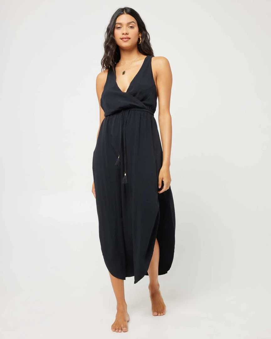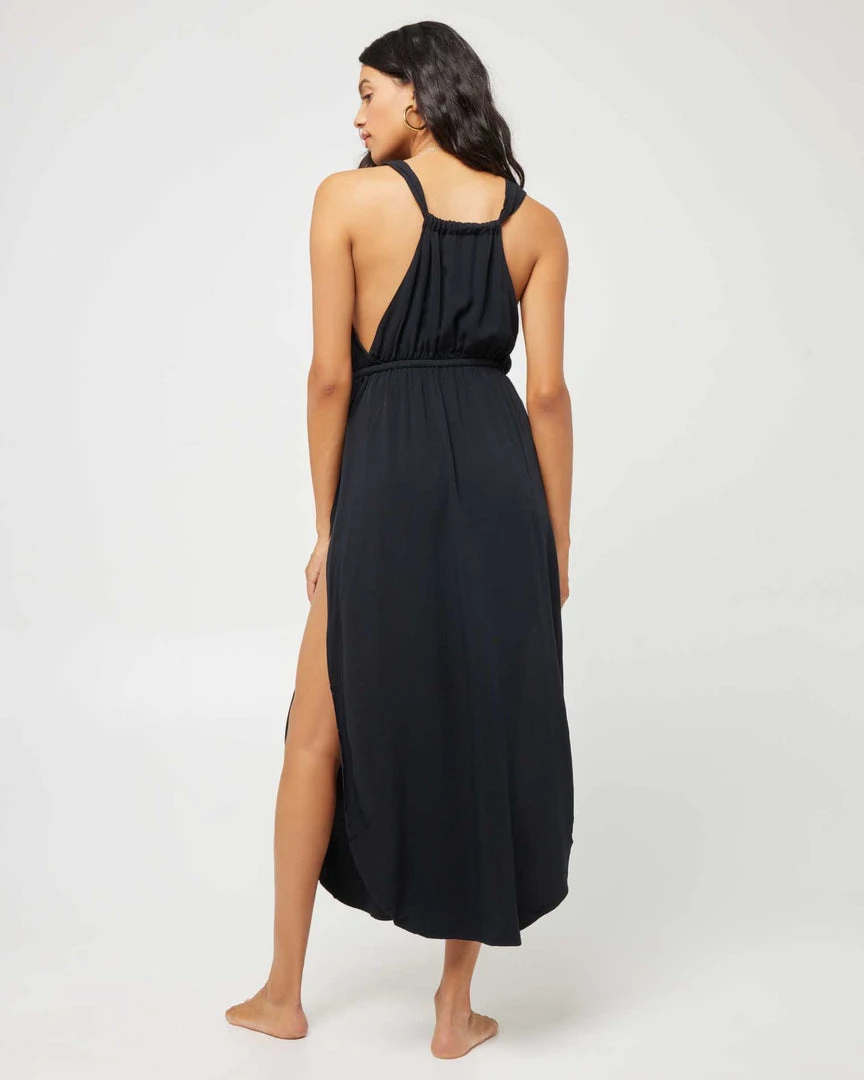 Say “hello sexy” in this high slit cover-up! Features a plunging V front with revealing sides to show off those catwalk, beach babe legs.
