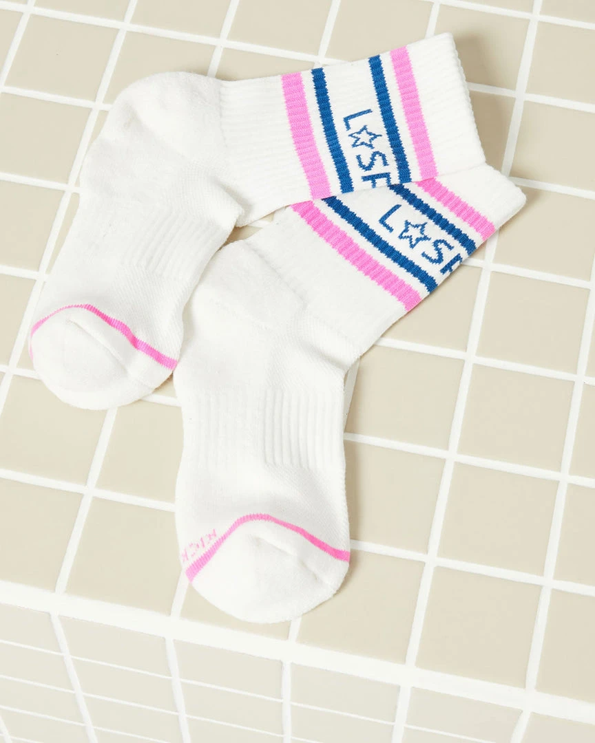 It’s all in the details. Whether you are headed to your weekly HIIT class or keepin’ it cozy at home, these classic tube socks with L*SPACE logo detail are a total must-have.