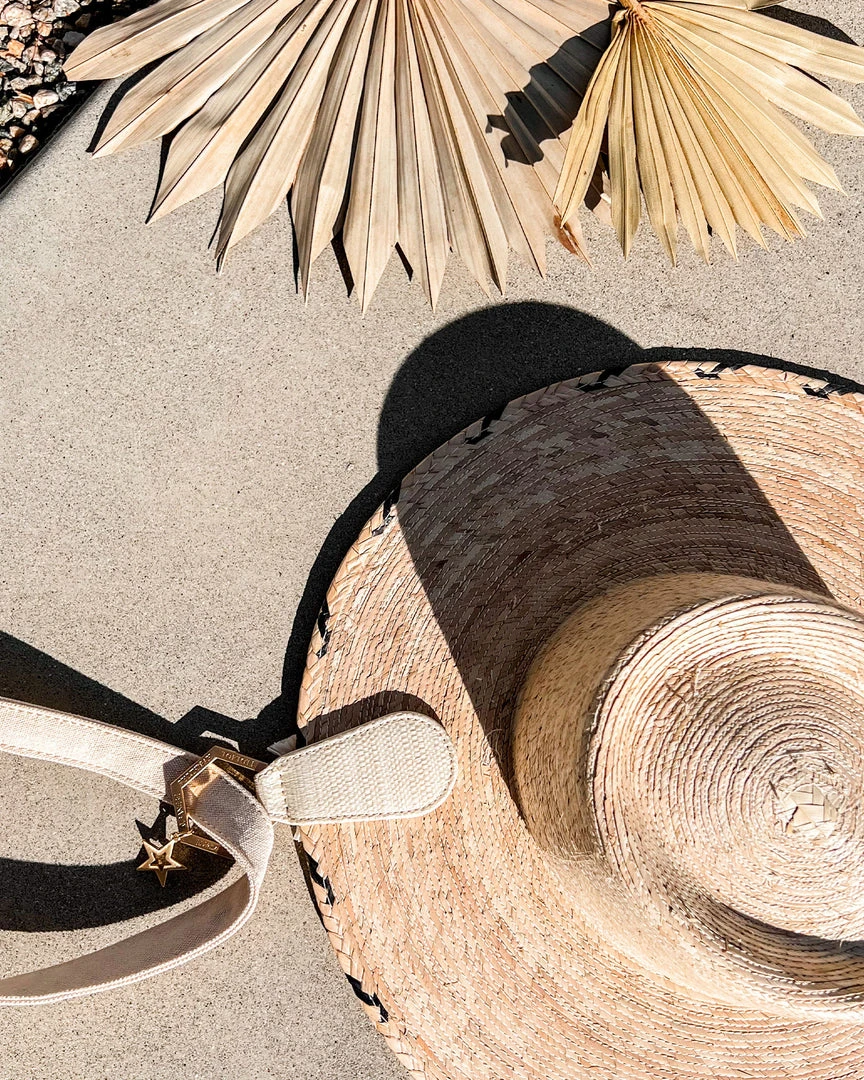 Constructed from 100% palm with contrast stitching, The Marco Hat caps off the special three piece LSPACE X Lindsay Albanese collaboration. Ideal for that weekend desert date or just lounging it up poolside, combine it with the Road Trippin’ Backpack and enhanced TOPTOTE hat holder and you’ll be relaxin’ in style. Flat topped, wide brimmed shade – by way of how only LSPACE X Lindsay Albanese could do it.