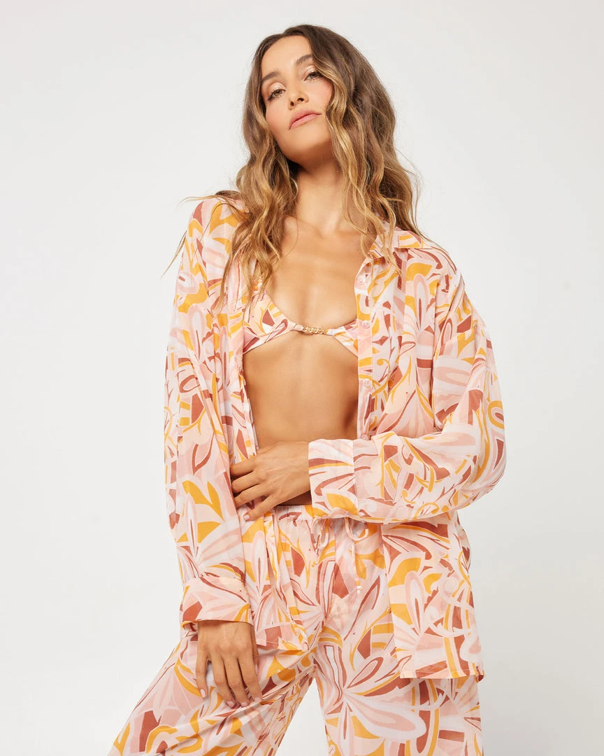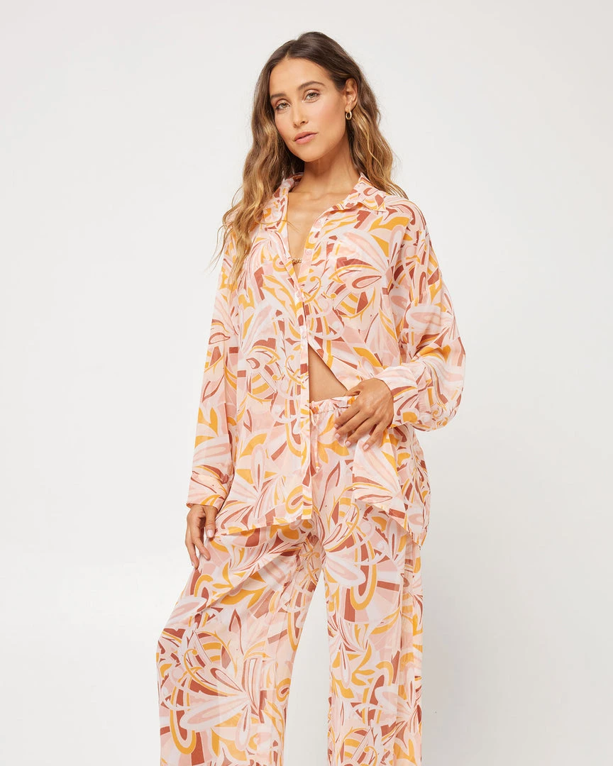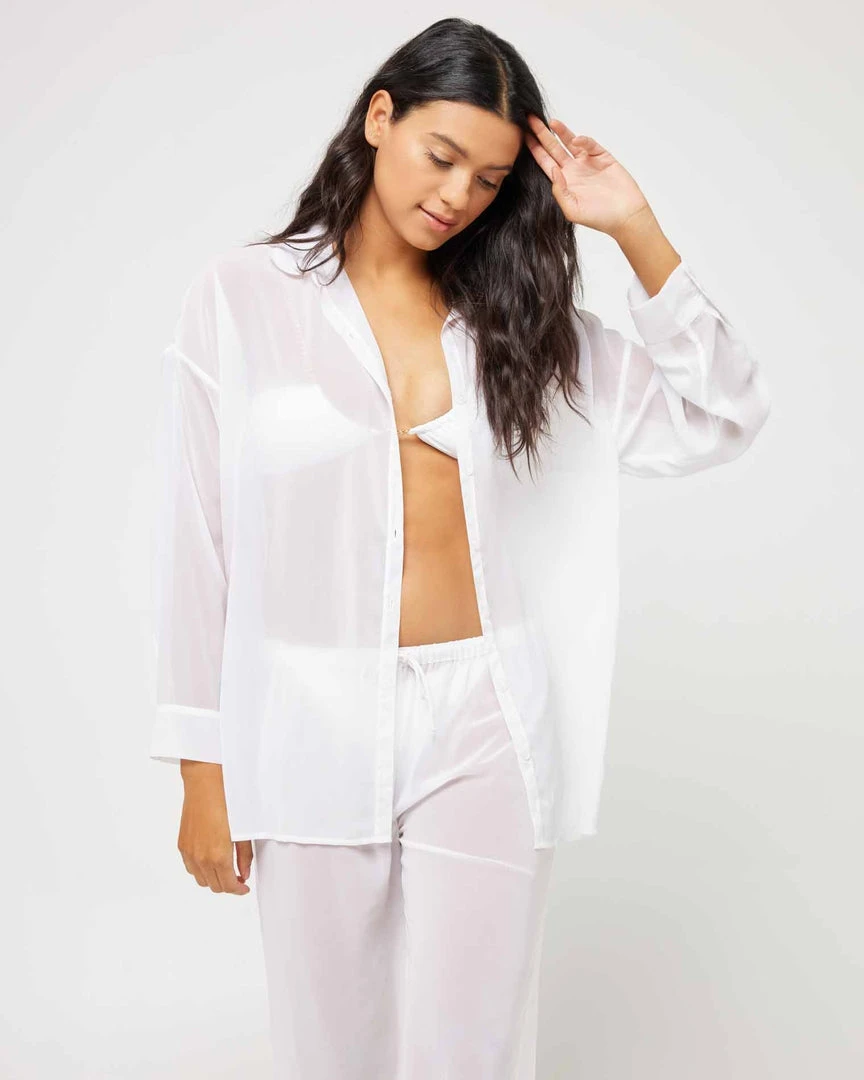 With its boxy oversized silhouette, the Catalina is sheer heaven. An Tessa Brooks x LSPACE collaboration, this sheer button-down collared shirt is a must have for all matters business and pleasure.