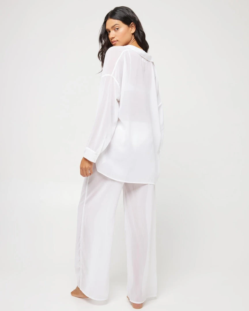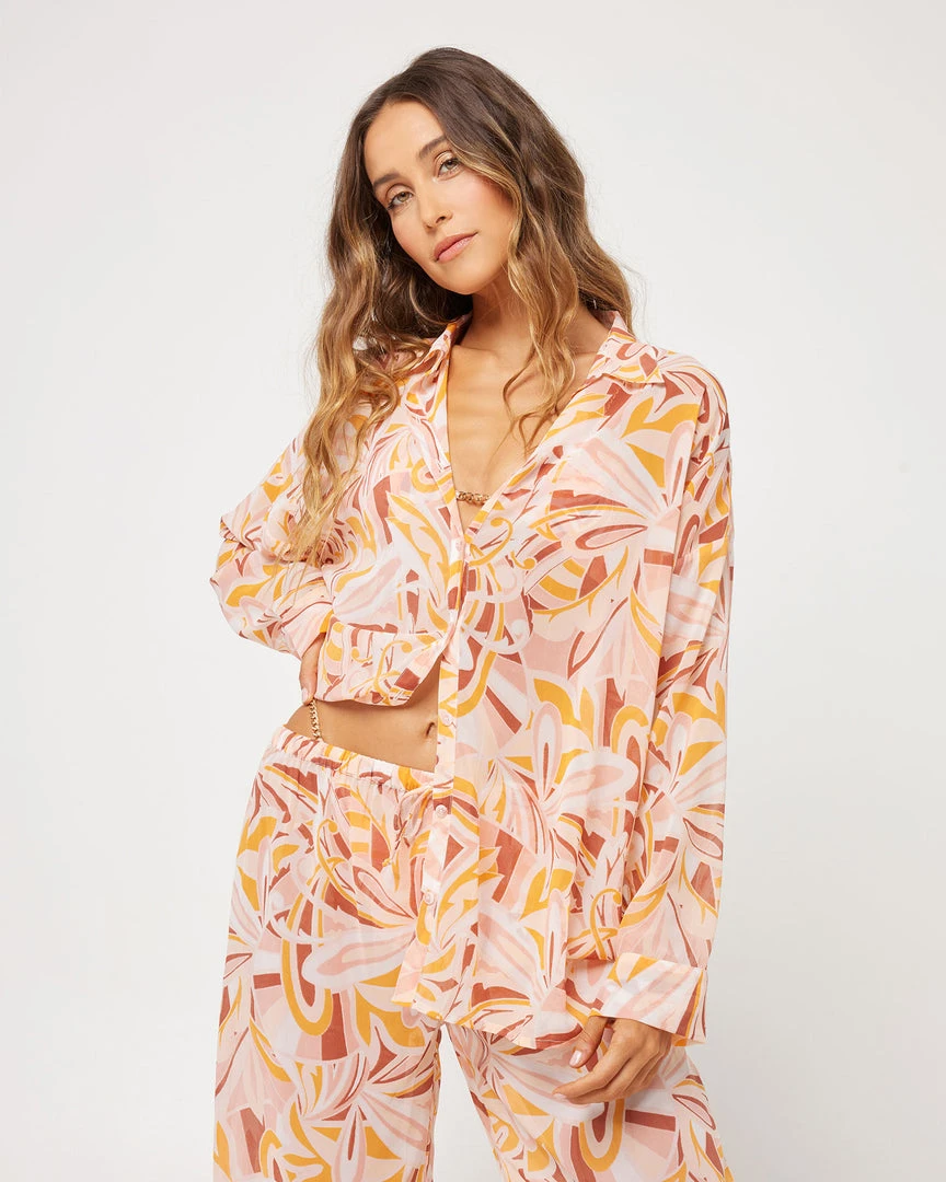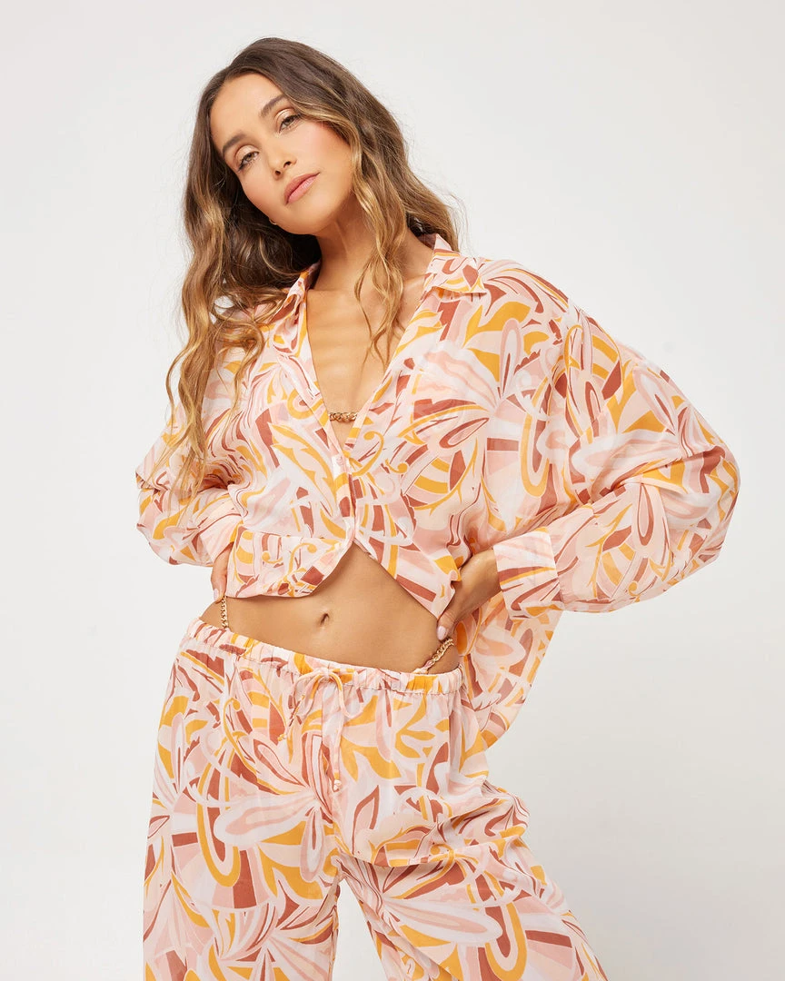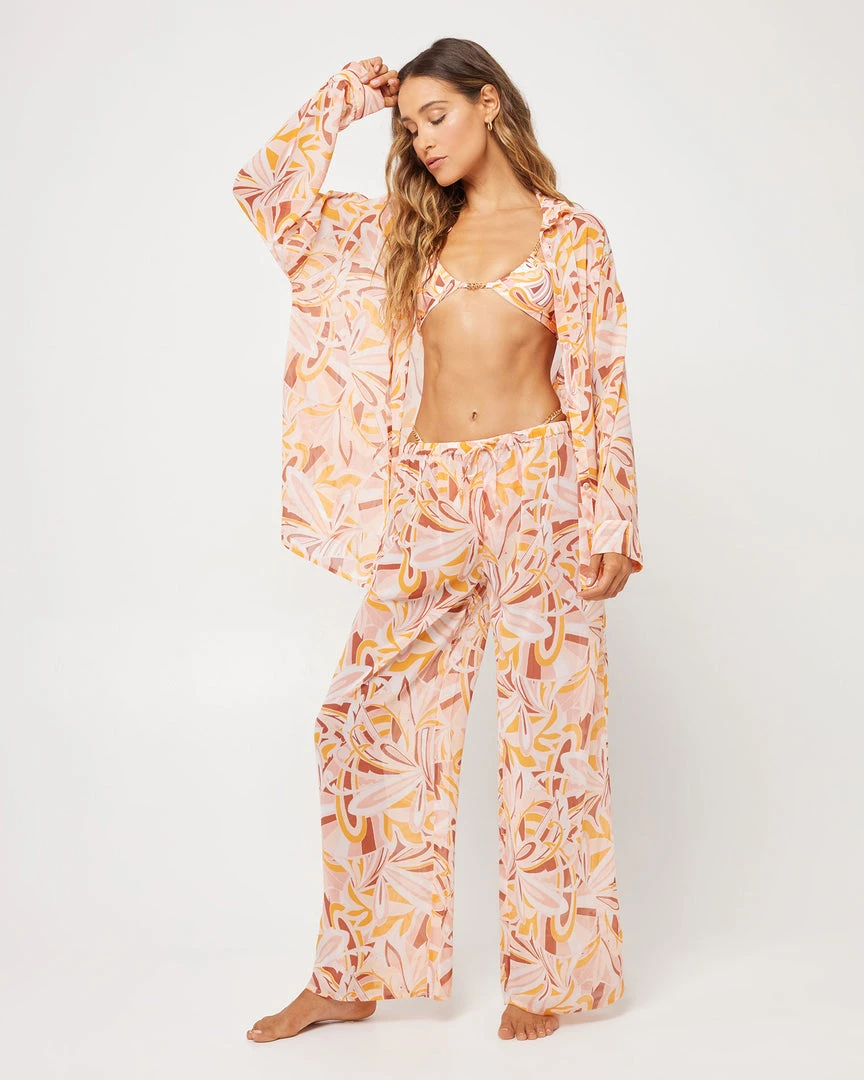 With its boxy oversized silhouette, the Catalina is sheer heaven. An Tessa Brooks x LSPACE collaboration, this sheer button-down collared shirt is a must have for all matters business and pleasure.