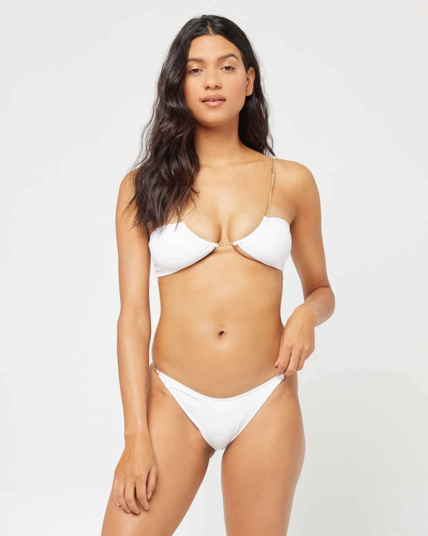 No weak link here. With its U front top adorned by a chain along the neckline, the Sammie has slider straps with three-point back adjustability and removable pads.