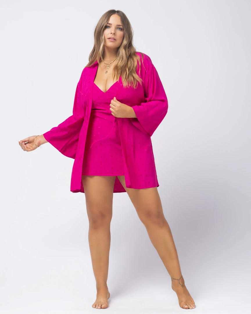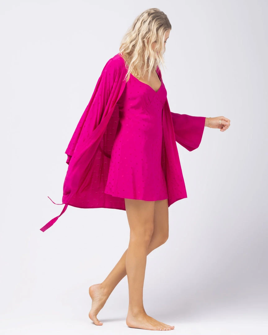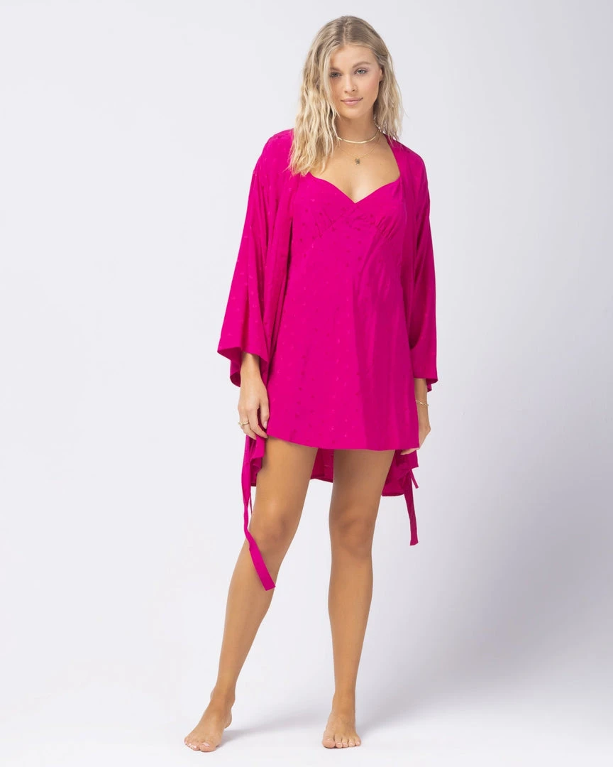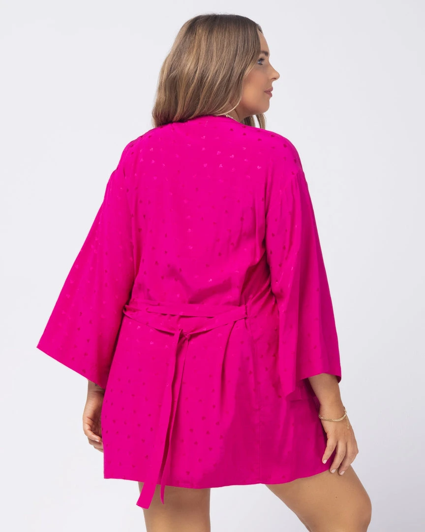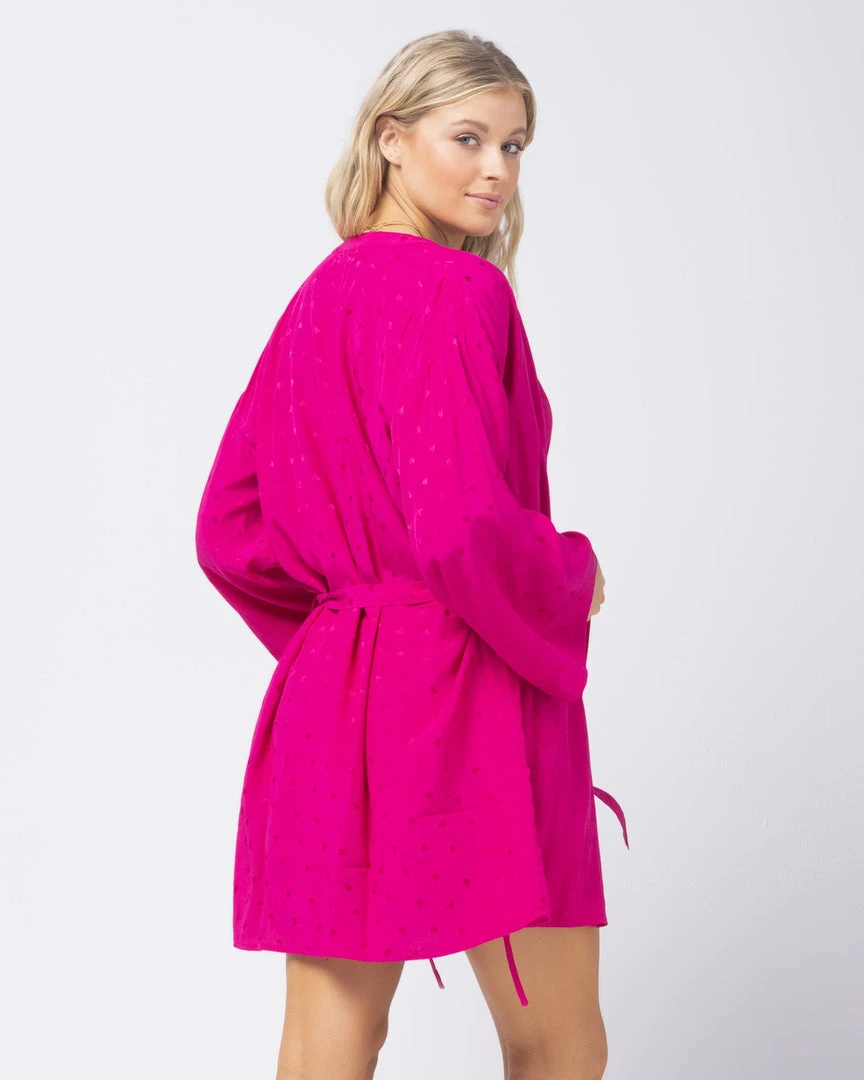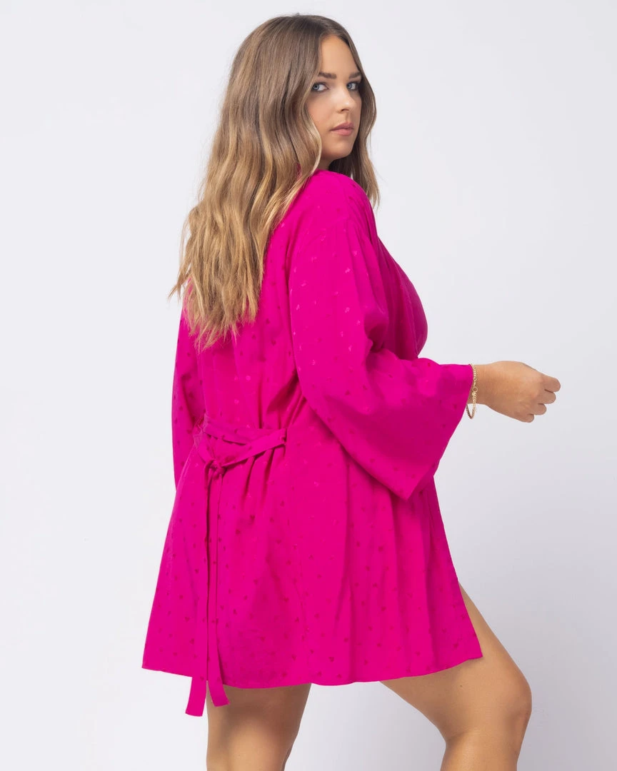 Take it from the bed to the beach with the Moonlit Robe. Designed from heart jacquard fabric, this robe comes with wide bell sleeves and thread chain loops at the sides with a belt.