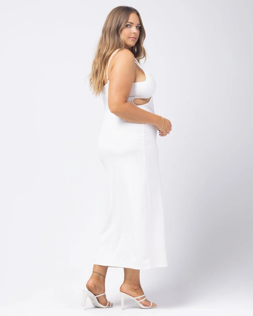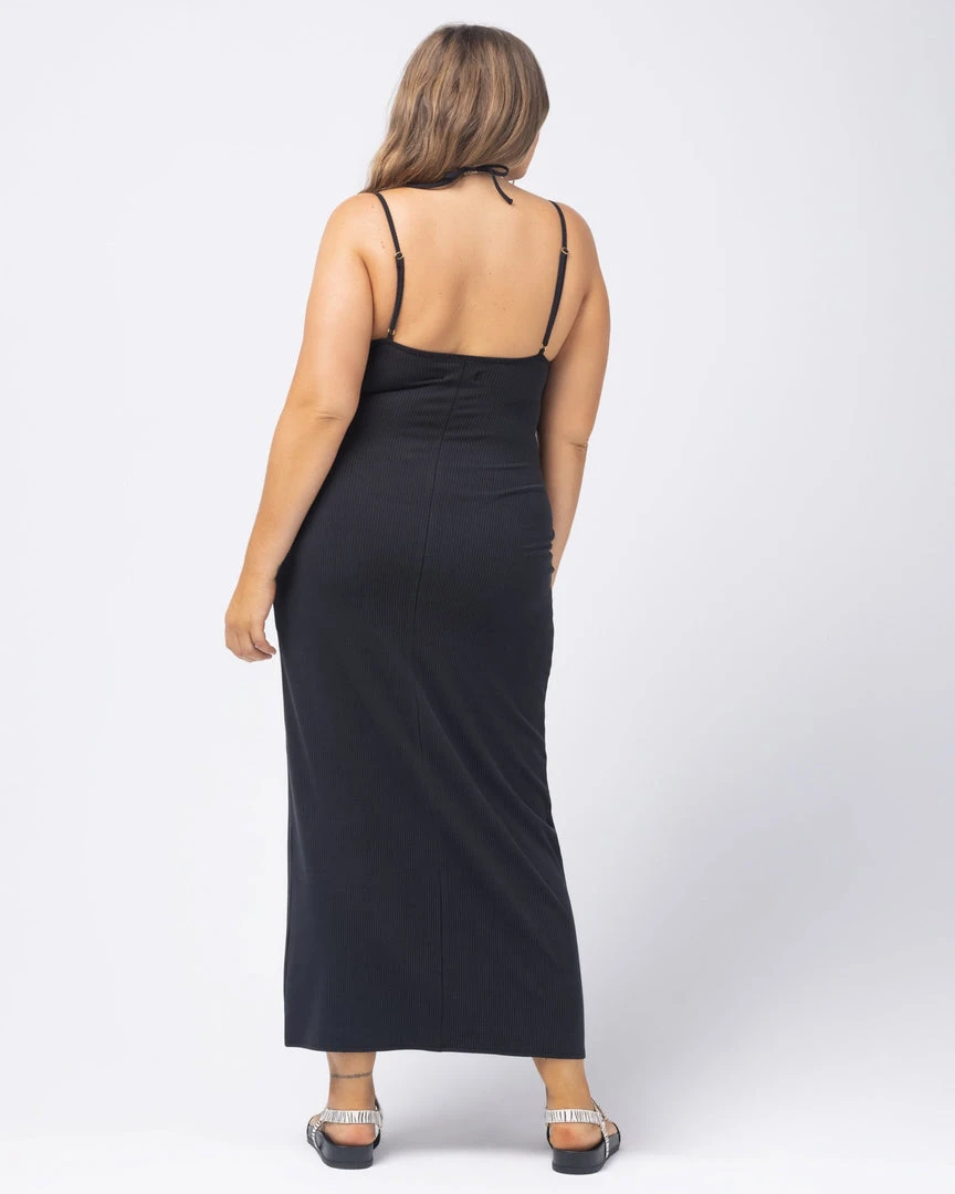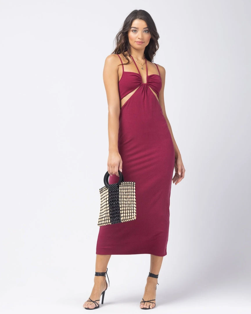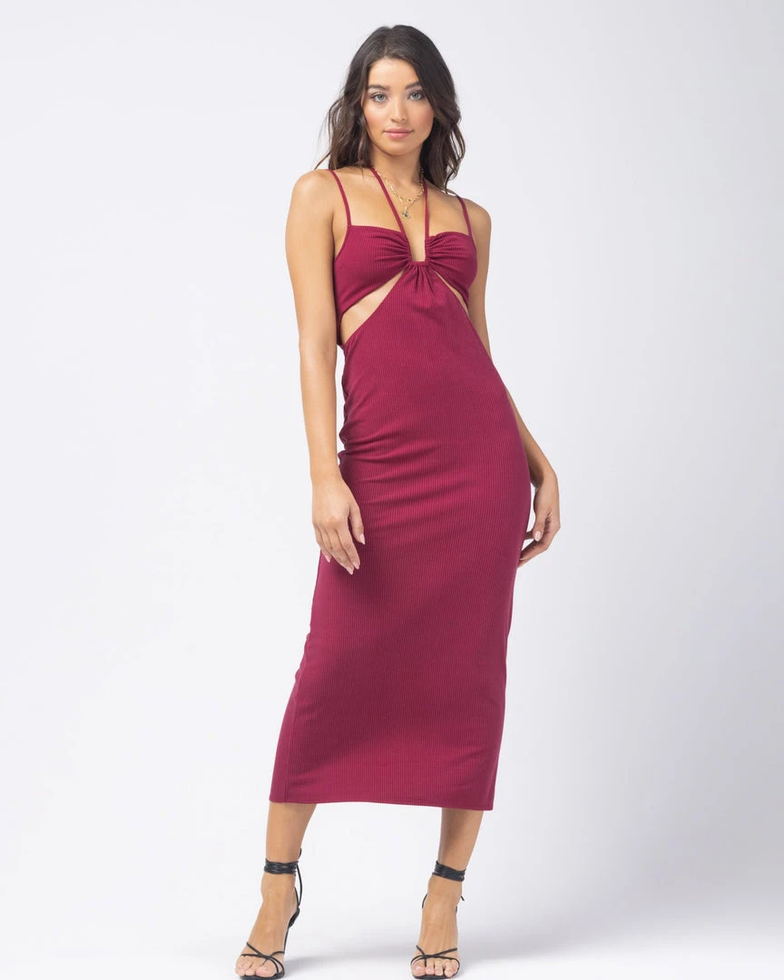 Turn heads and make waves in the Naomi Dress. Designed in our ultra-flattering and super comfy ribbed fabric, this midi features a front u-wire neckline, side cutouts, and an adjustable halter strap for the perfect fit. Be prepared for lots of; where did you get that questions when you’re wearing this one.