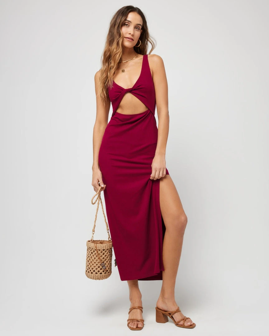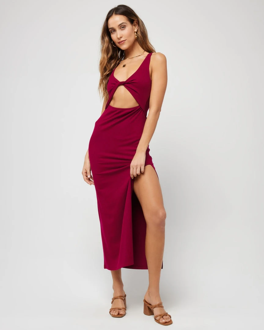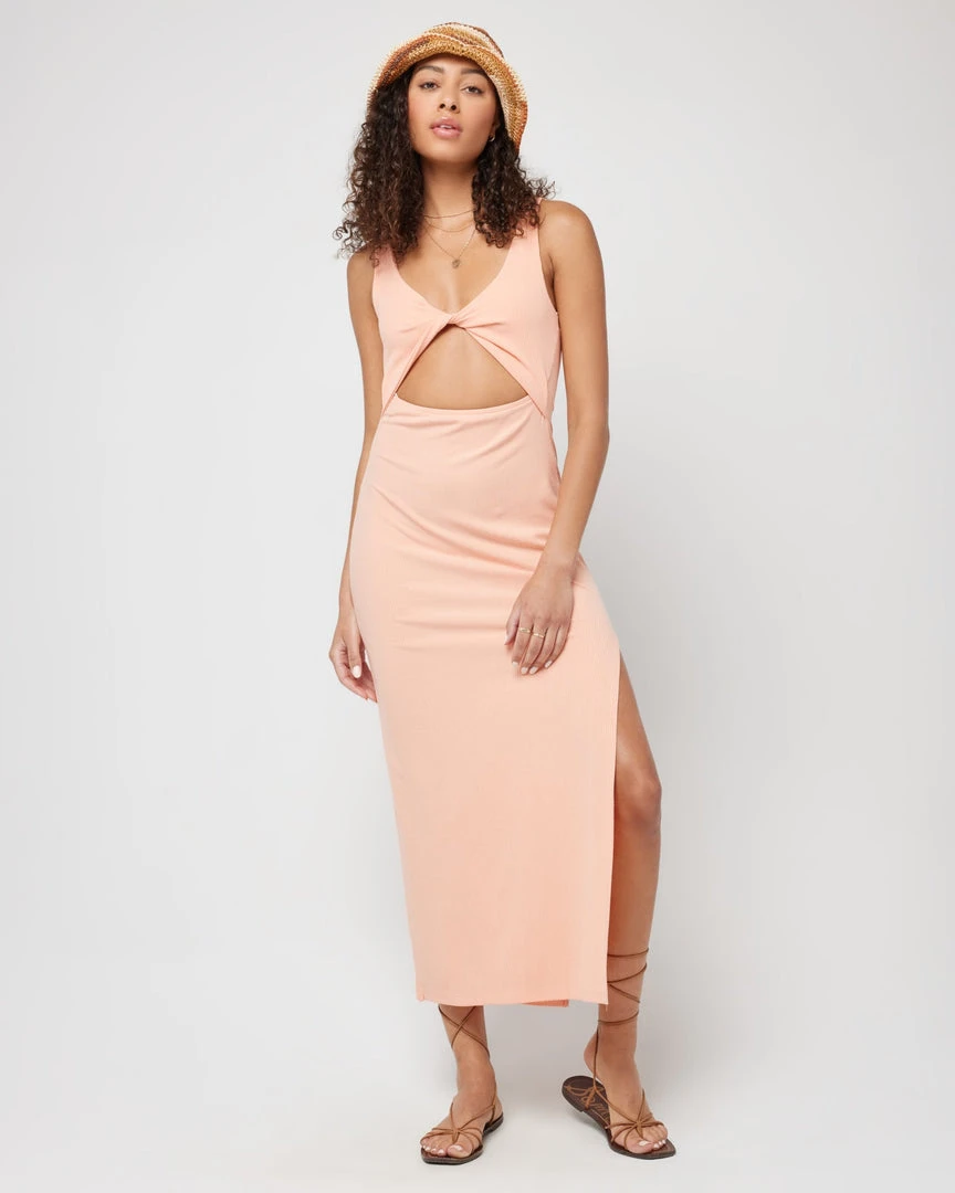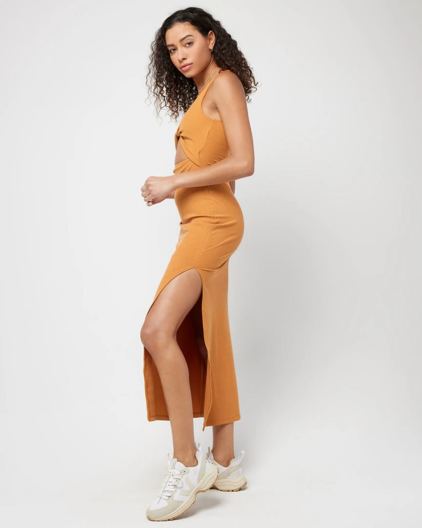 Comfy meets cute with the Nico Dress, crafted super soft ribbed fabric. Features a keyhole twist front and breezy side slit.