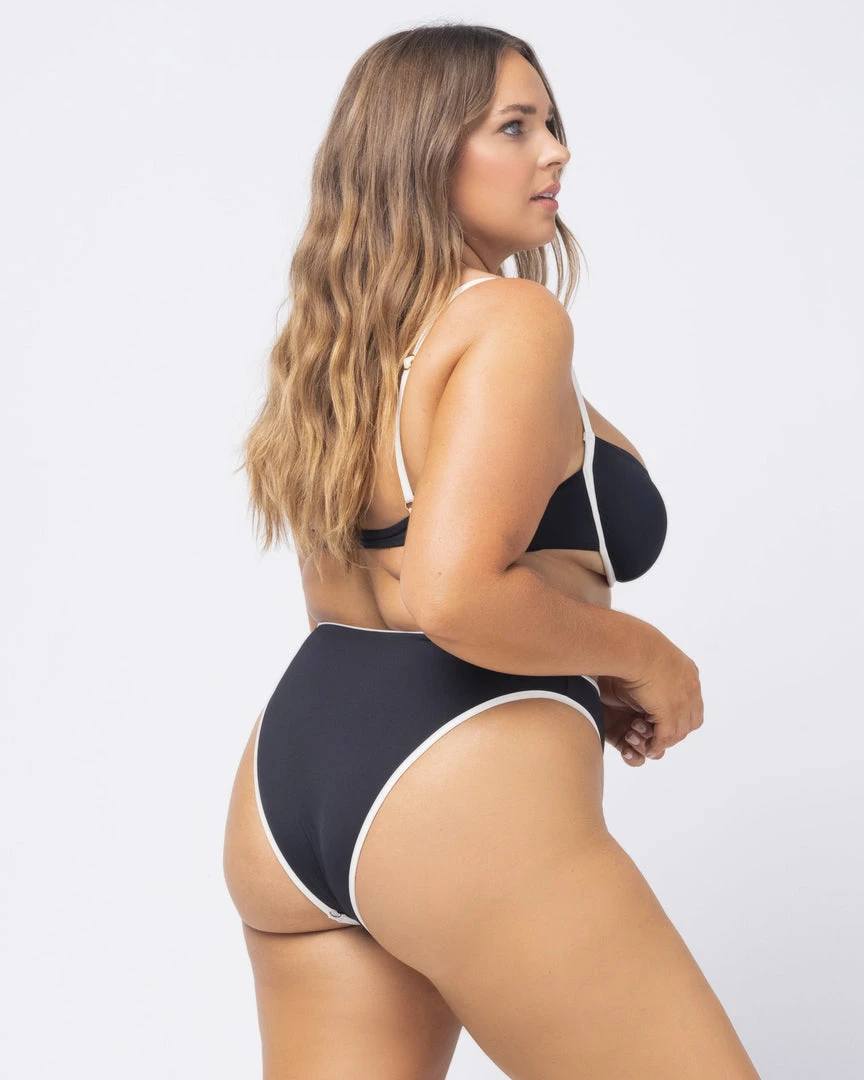 Take it up a tad with the Nora Bikini Bottom. With its contrast binding, this bitsy bottom sits high on the waist and cuts high on the leg for a season long flattering look.