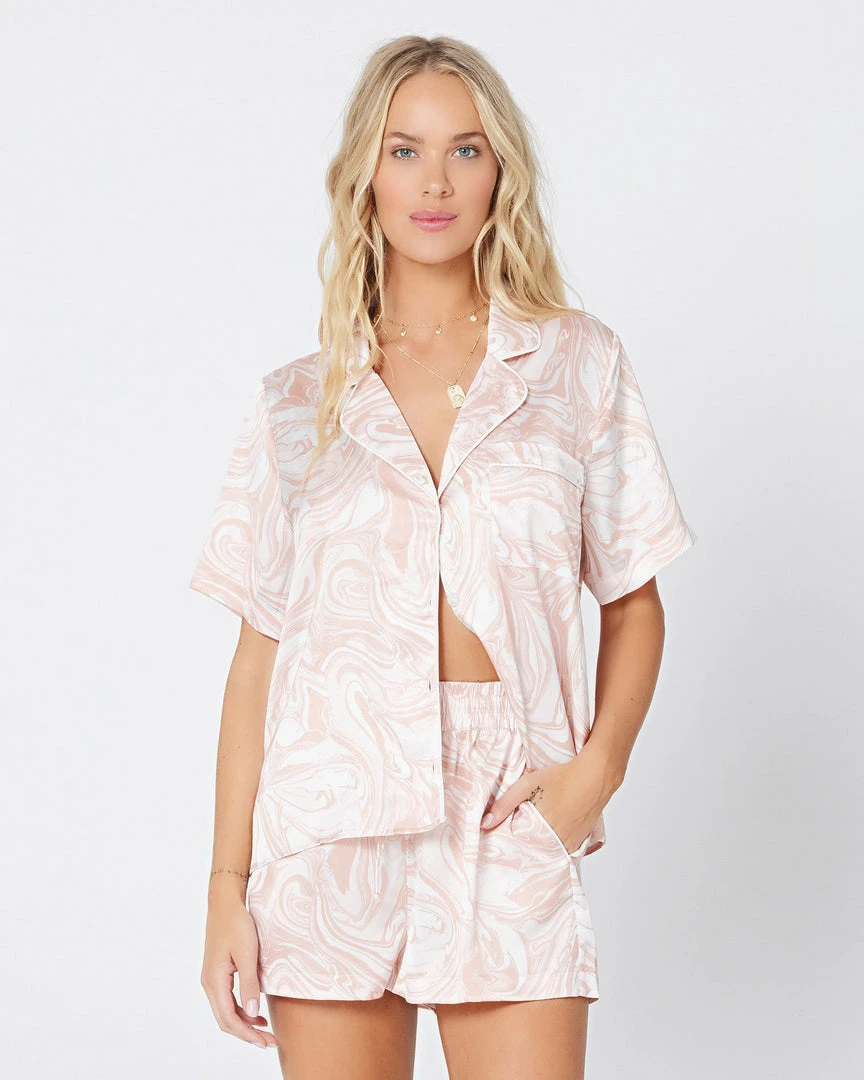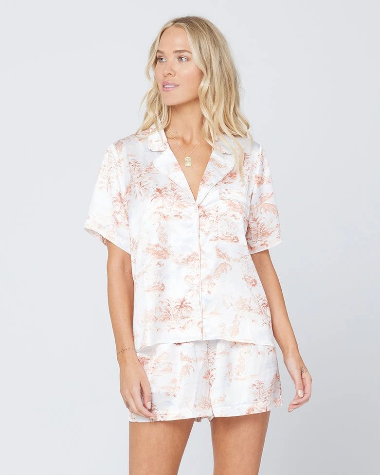 Bedtime’s the best time with the Nova PJ set. Featuring a fun print, button front top, and relaxed shorts, it’s the definition of comfy and cute.