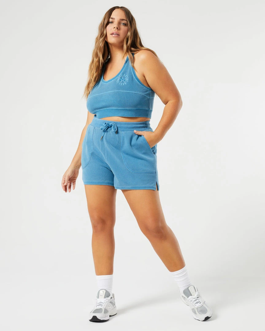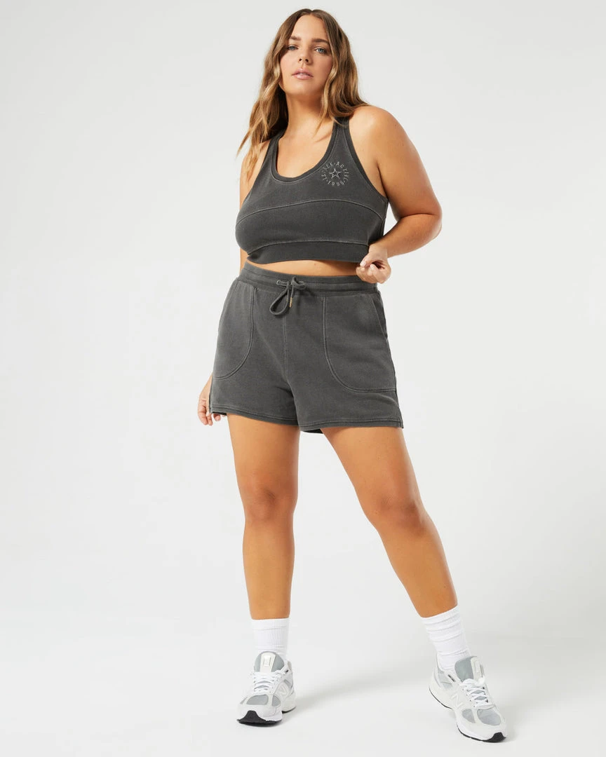 The opportunities are endless and always comfy in the Out Of Bounds Top. This pull-on cropped tank features a racerback for extra mobility, embroidered logo detail, and on-trend super soft acid-washed fabric. Pair with the Sidelined Short for the cutest off-duty set.