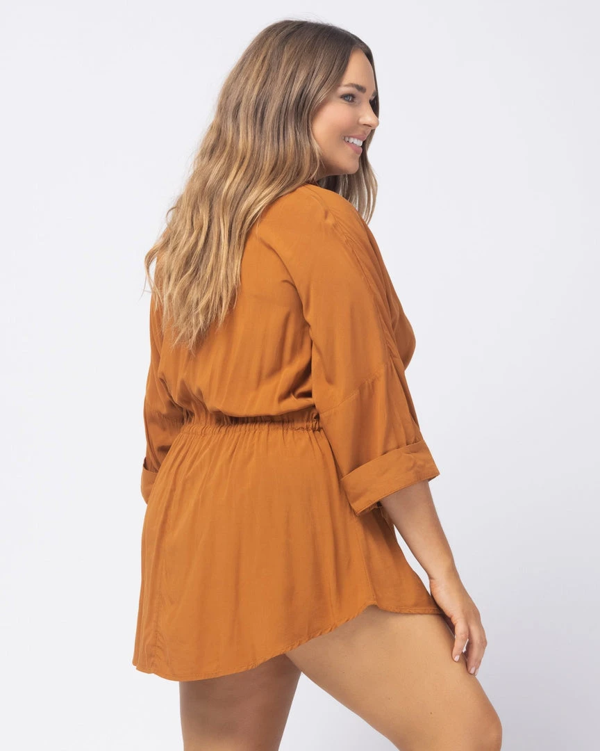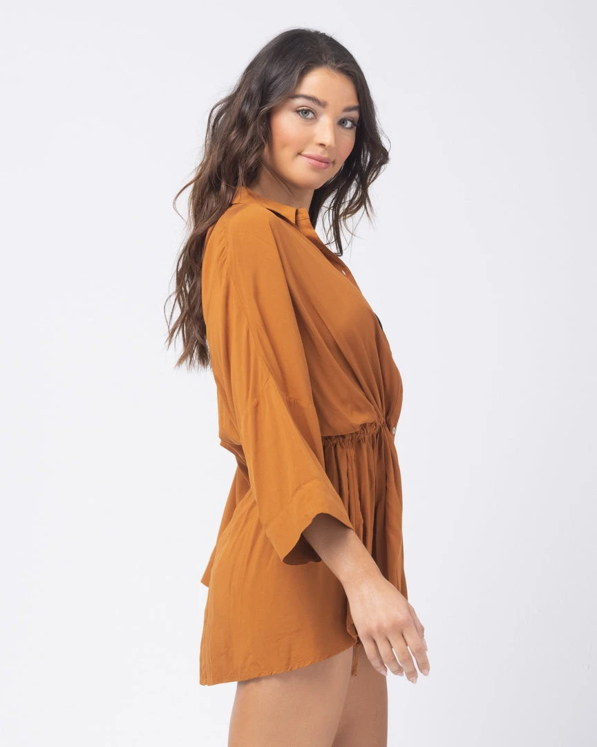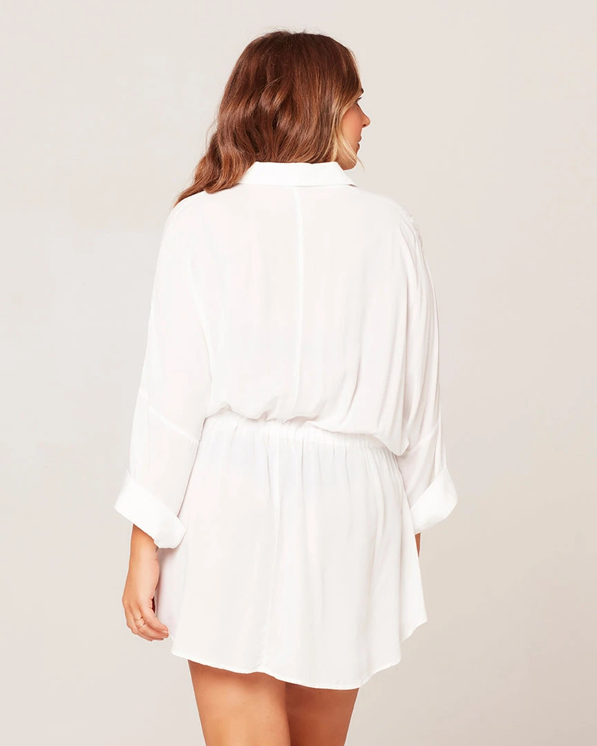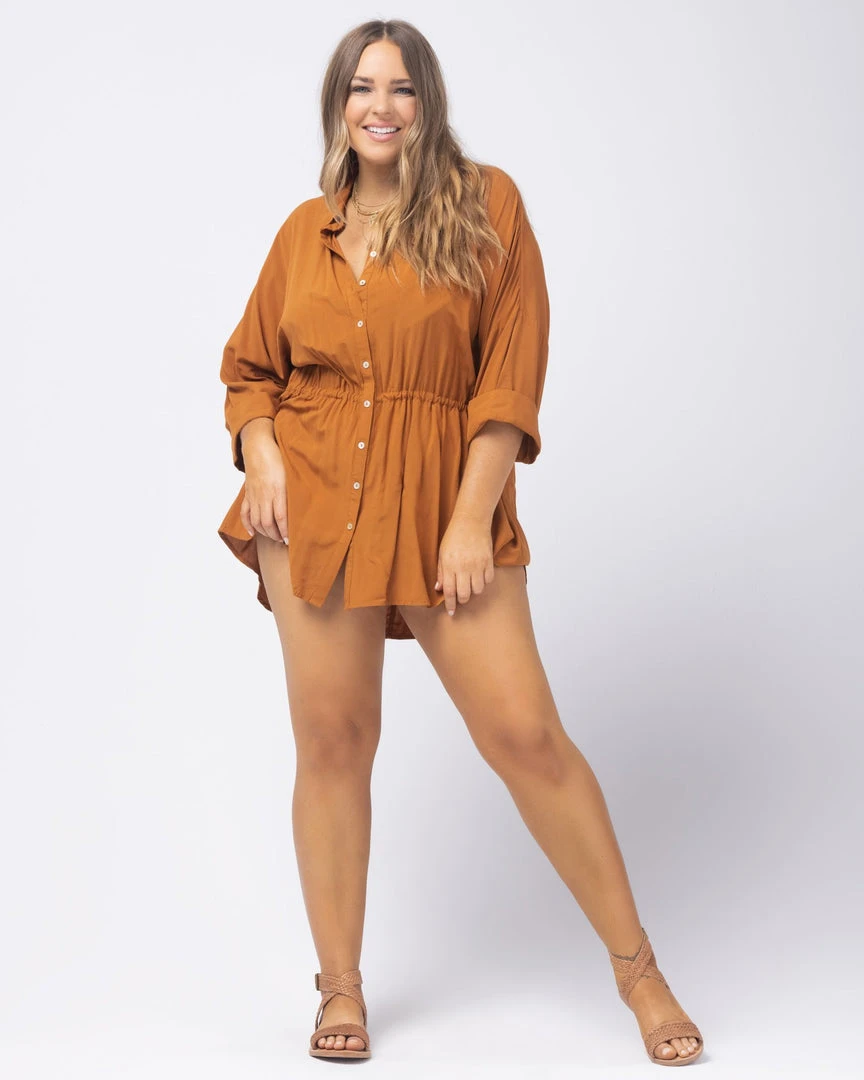 Dare to bare those hard-earned sunkissed legs in our breezy button-down tunic, loosely fitted with a draw chord cinched at the waist.