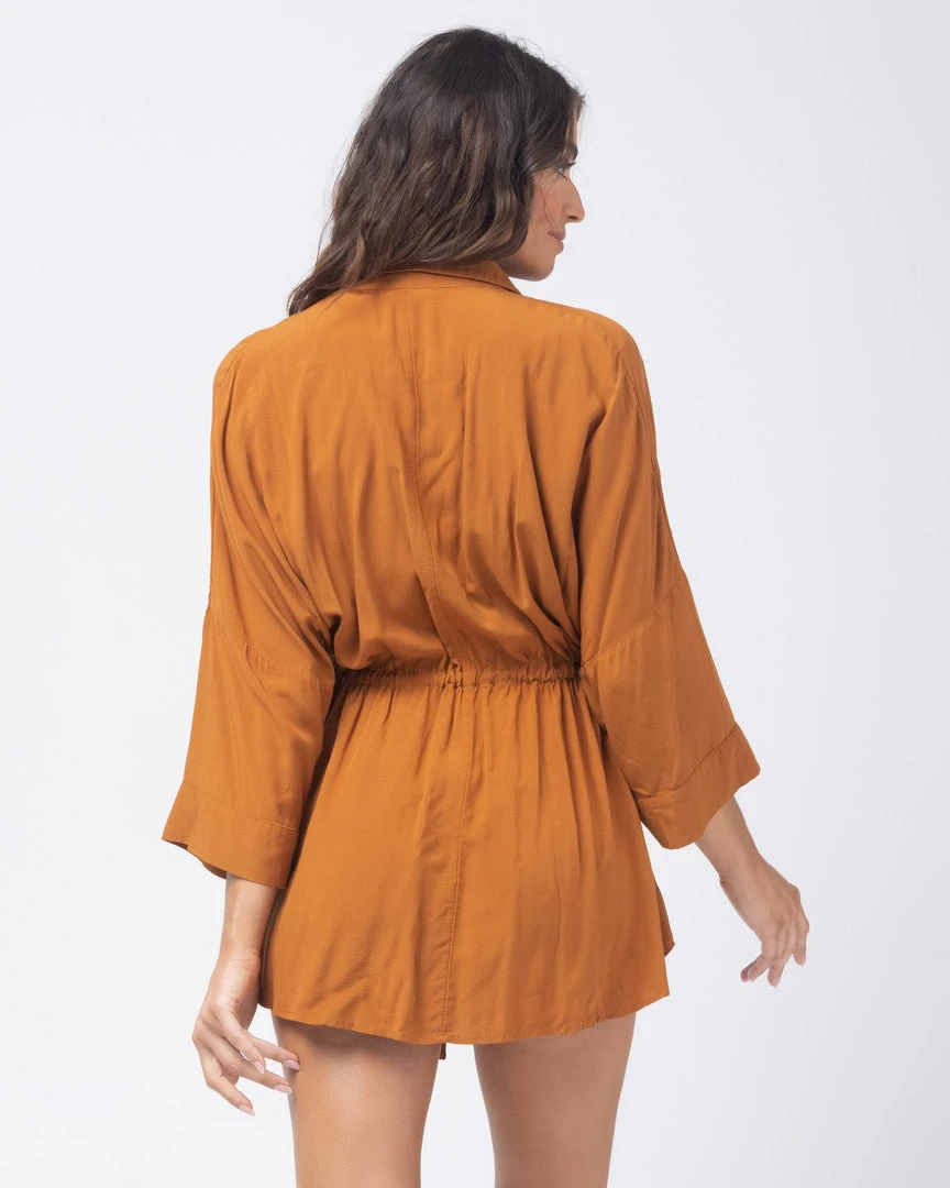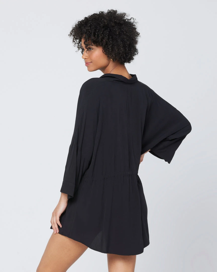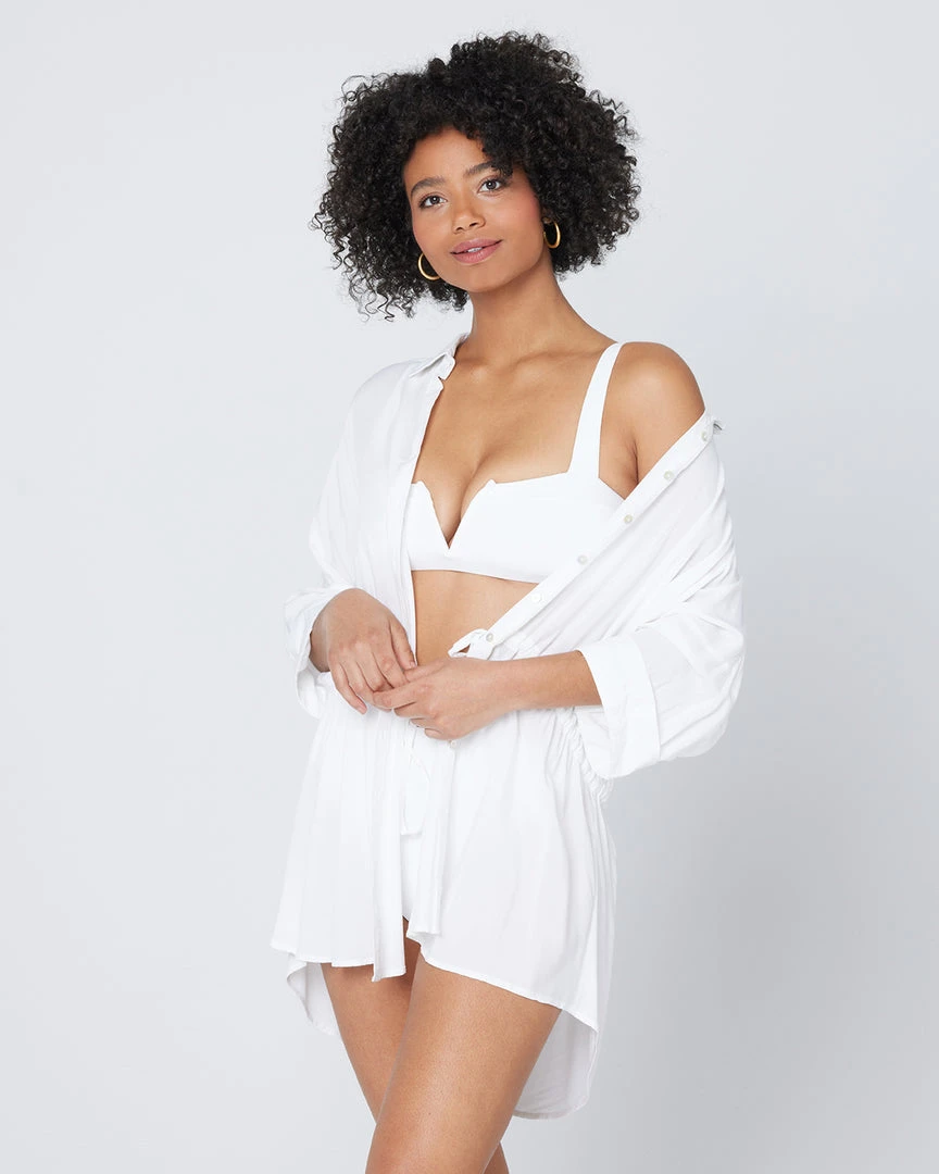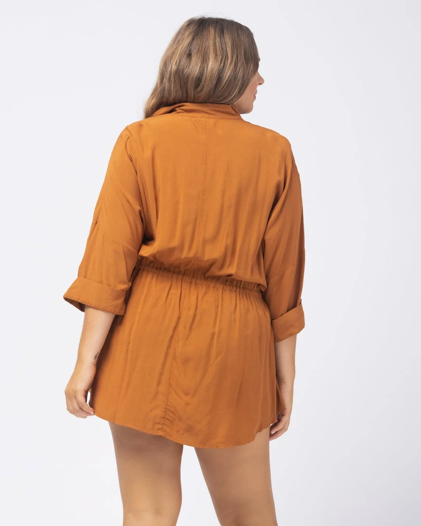 Dare to bare those hard-earned sunkissed legs in our breezy button-down tunic, loosely fitted with a draw chord cinched at the waist.