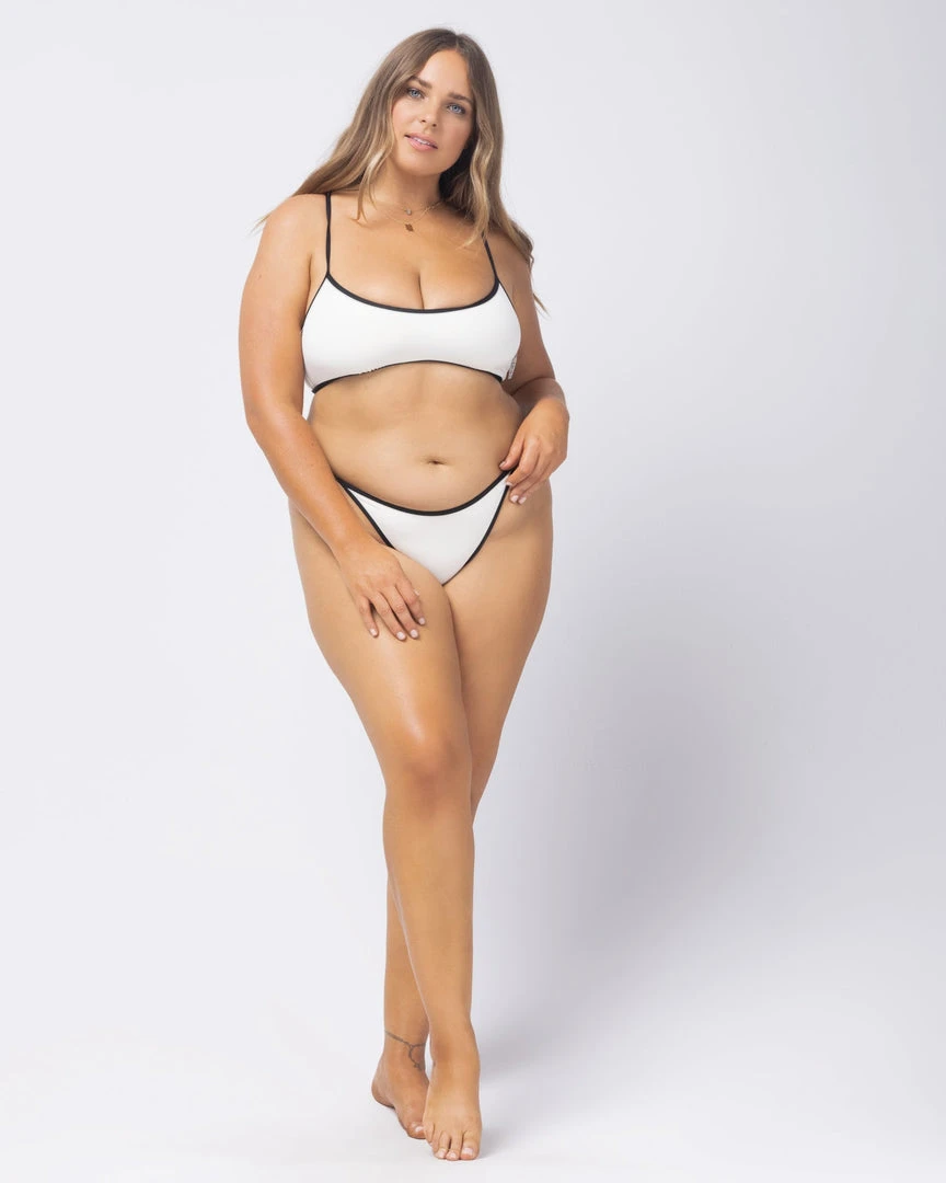 Get your beach body on with the Pamela Bikini Top. A little bit athletic and a whole lotta fun, this pullover top features a scooped neckline with adjustable straps, removable pads, and racerback with ring detail.