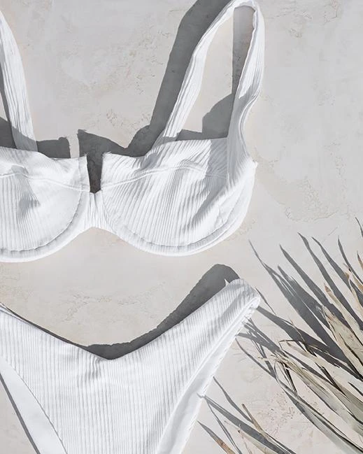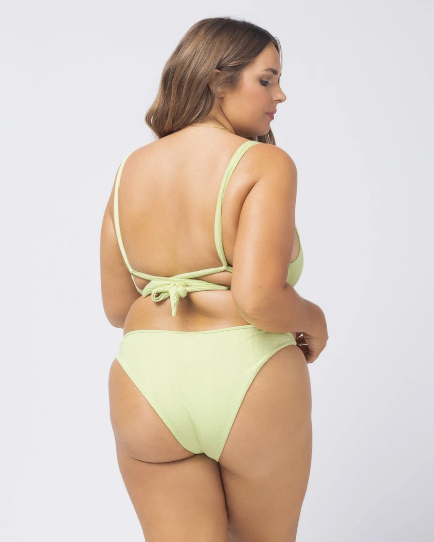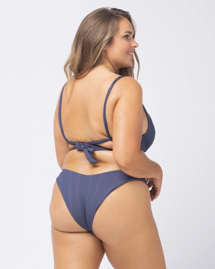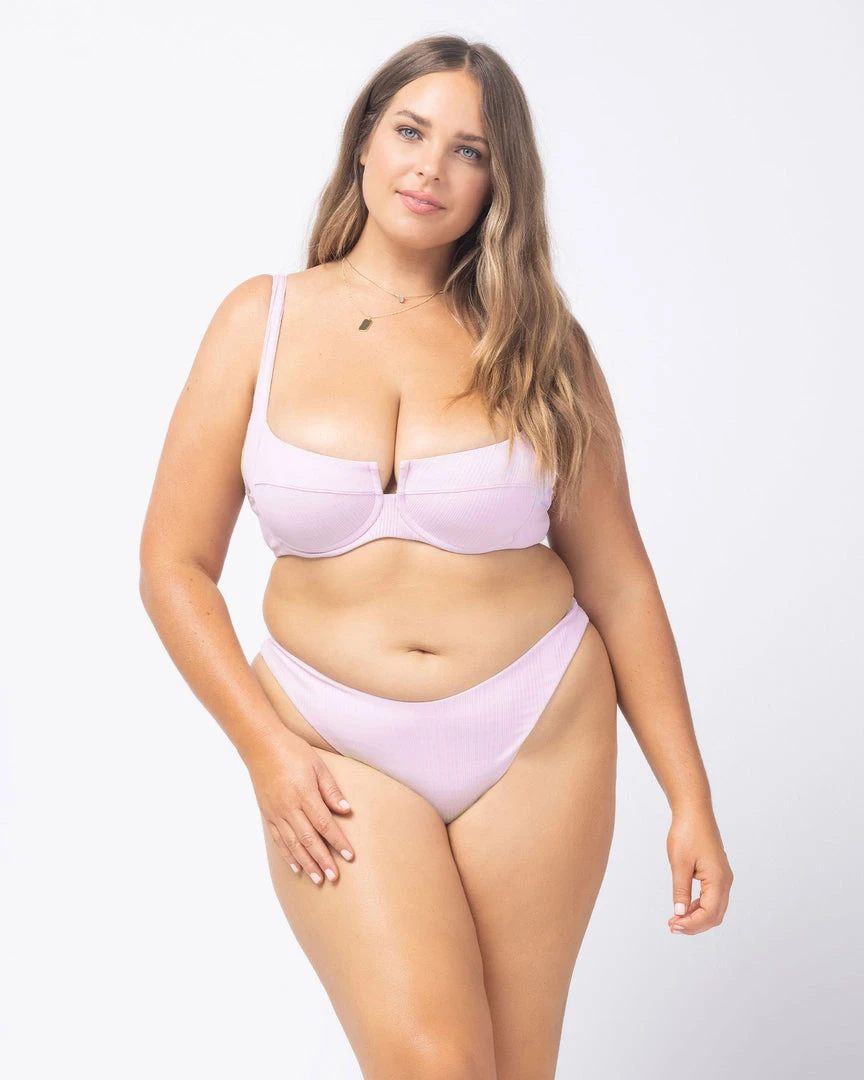All of your support wishes are granted with our Pointelle Rib Camellia Bikini Top! Constructed with ribbed texture fabric, underwire, thick supporting straps, and a lace-up back for a truly customized fit.
