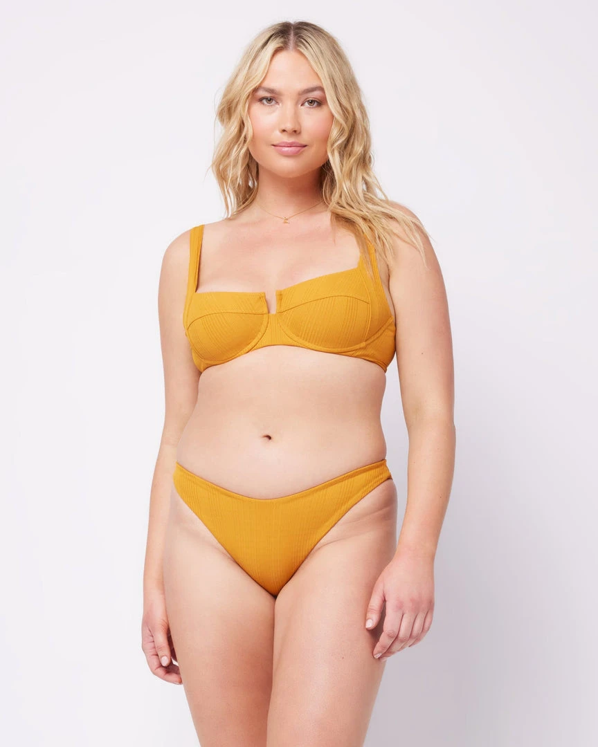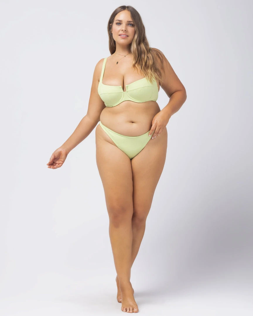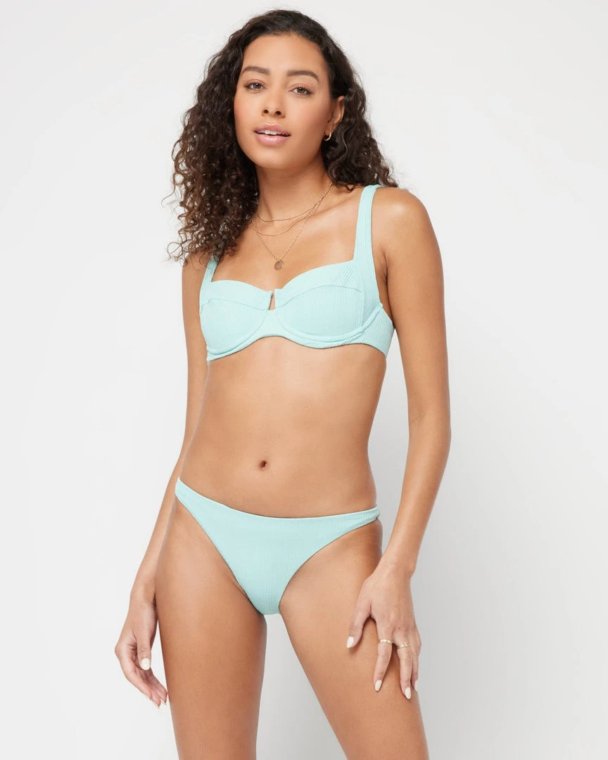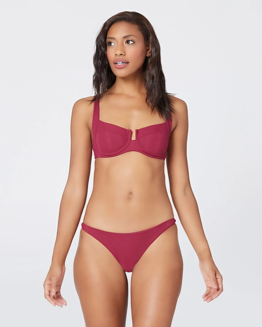 All of your support wishes are granted with our Pointelle Rib Camellia Bikini Top! Constructed with ribbed texture fabric, underwire, thick supporting straps, and a lace-up back for a truly customized fit.
