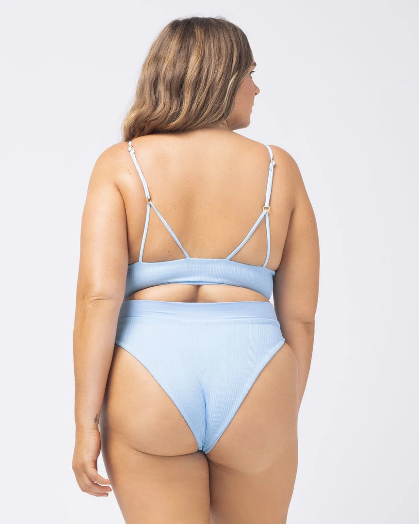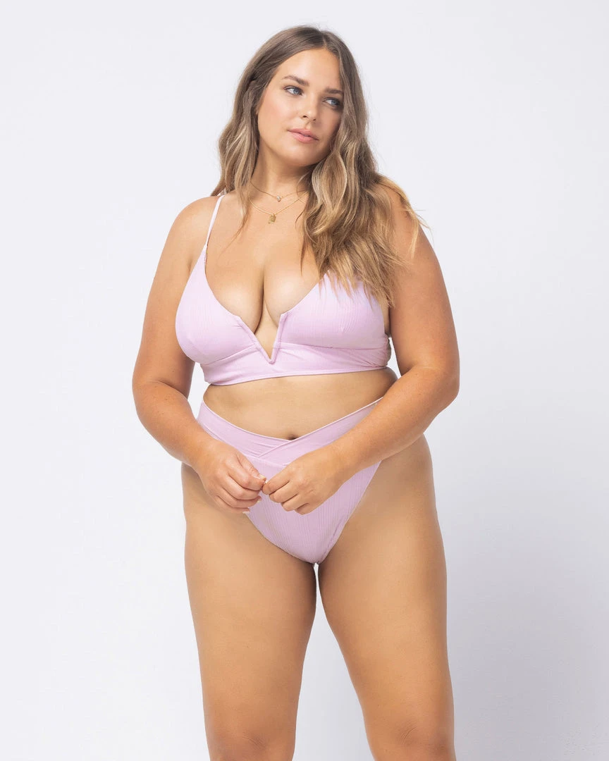 A retro-inspired sculptural silhouette makes the Siren Top a must-have for any beach bombshell. This pullover pointelle ribbed top features a plunging V-wire front and V-detail back. Removable pads and adjustable straps lets you customize your look.