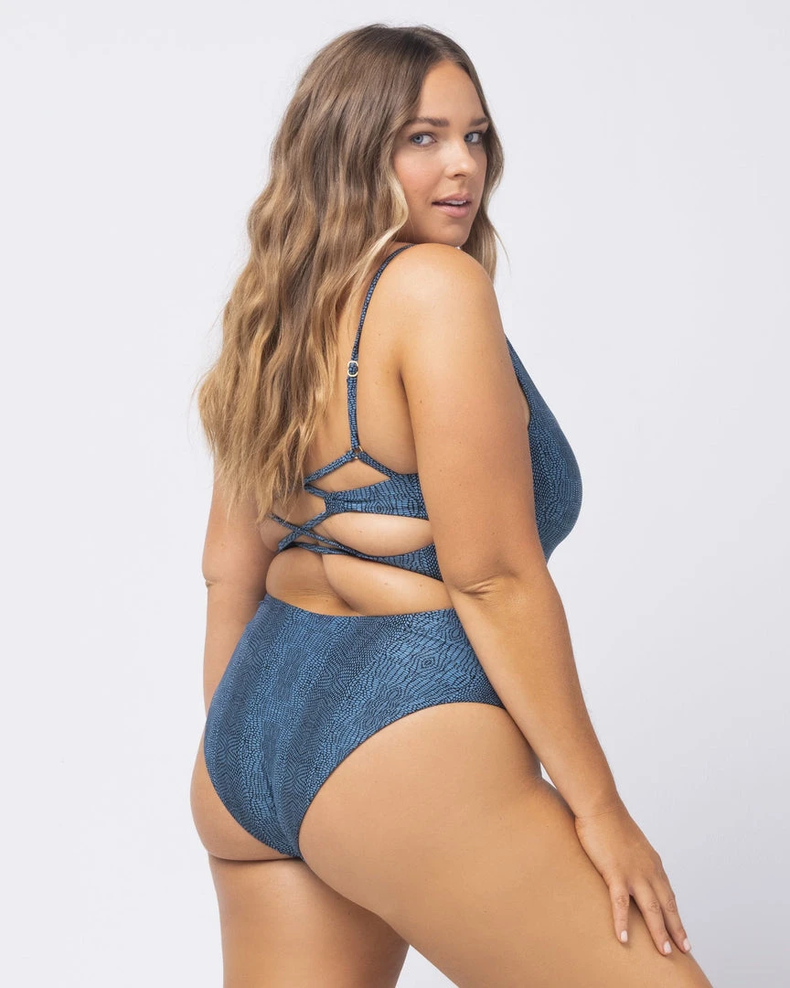 Make a splash in the Gianna One Piece. From its plunging V neck to its high leg cut, this sleek bodysuit features bust darts for a more flattering look and adjustable straps with a back crisscross strap detail..