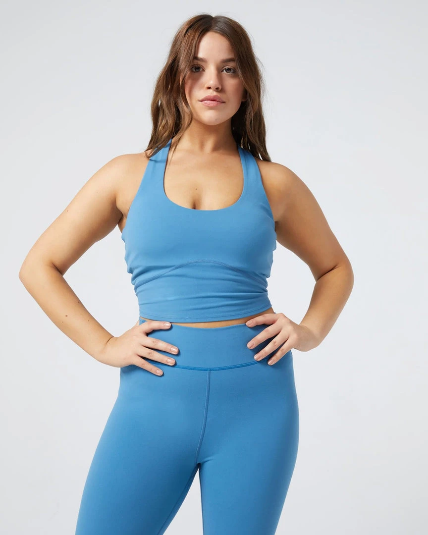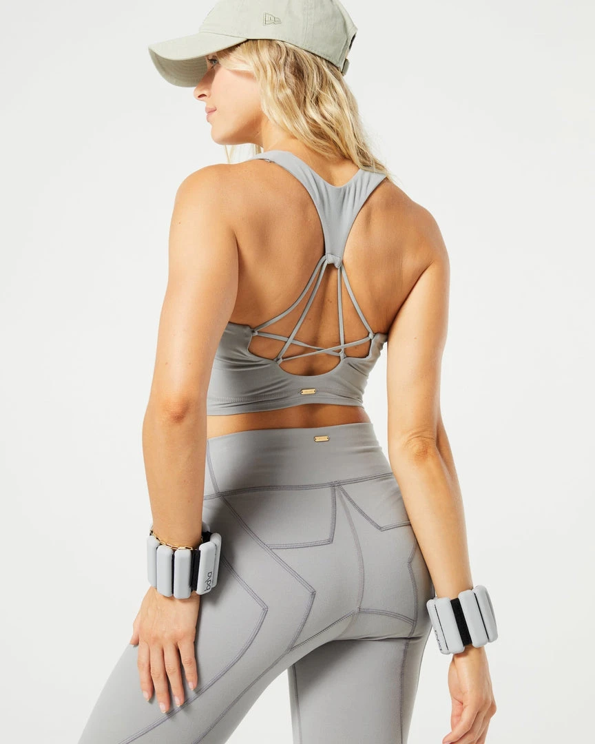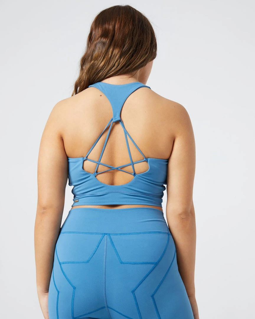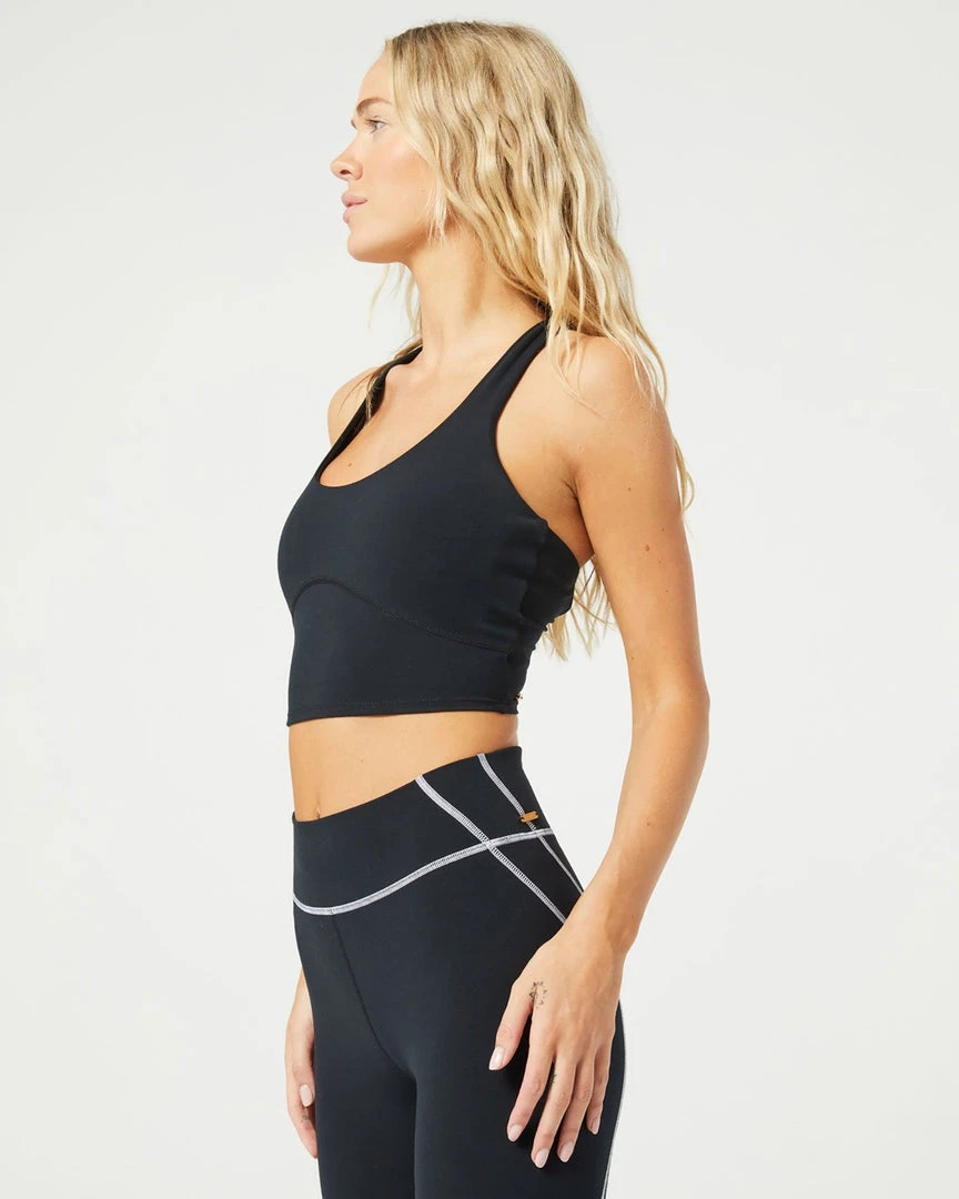 Take your workouts to the next level in the Push It Top. This supportive long-line bra top features a scoop neckline, removable padding, and star pattern elastic back detail.