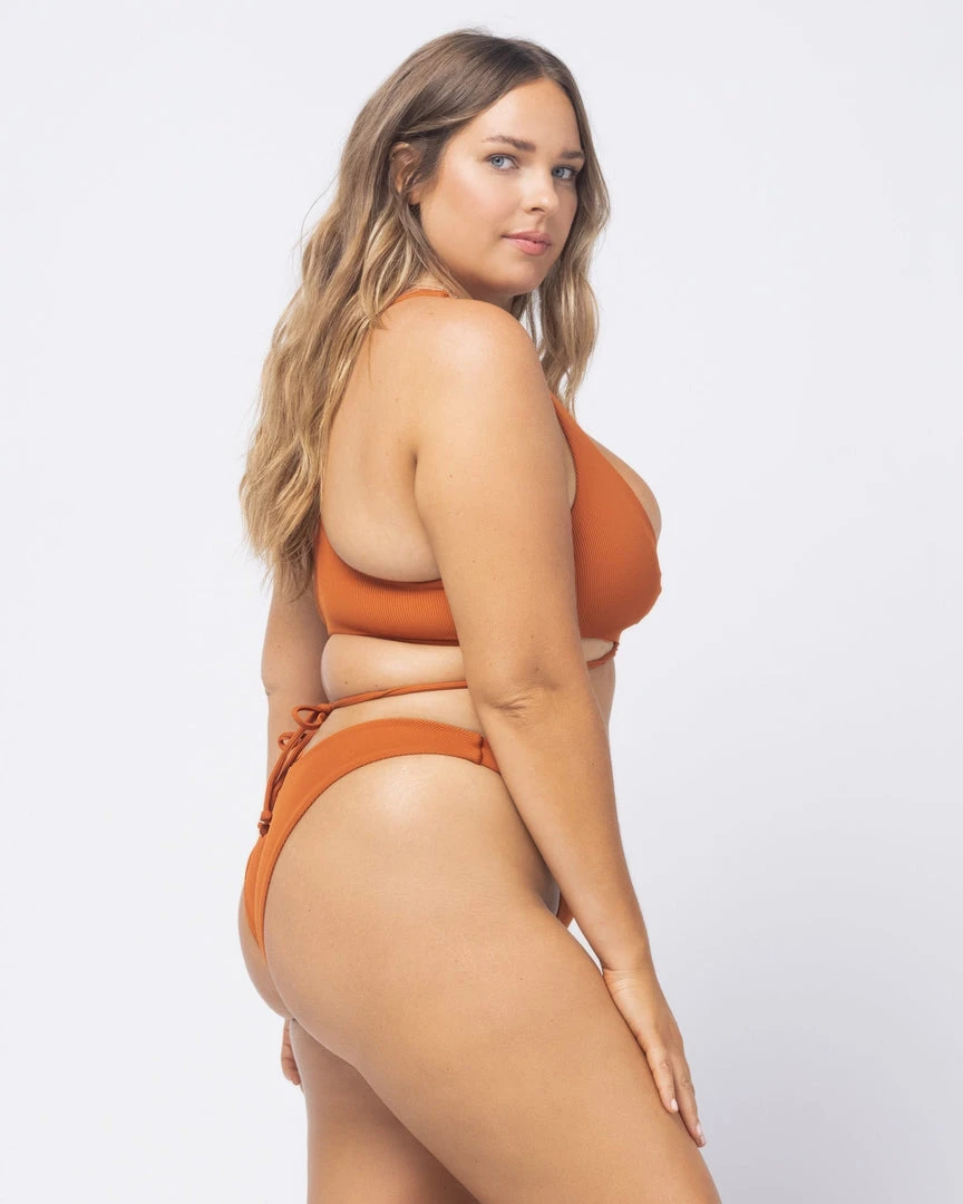 Tie it up in style with the Dax Bikini Top. This lace up front bikini top in ribbed fabric comes with long adjustable ties, and features a racerback detail and removable pads.