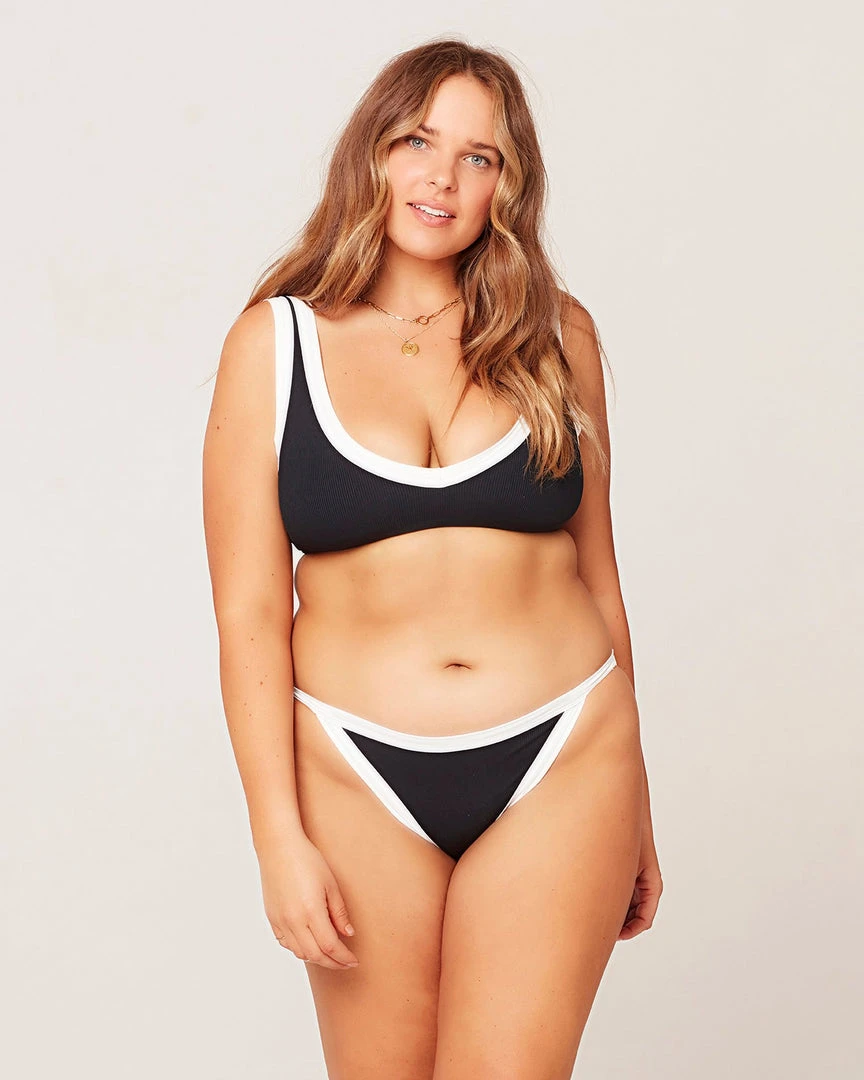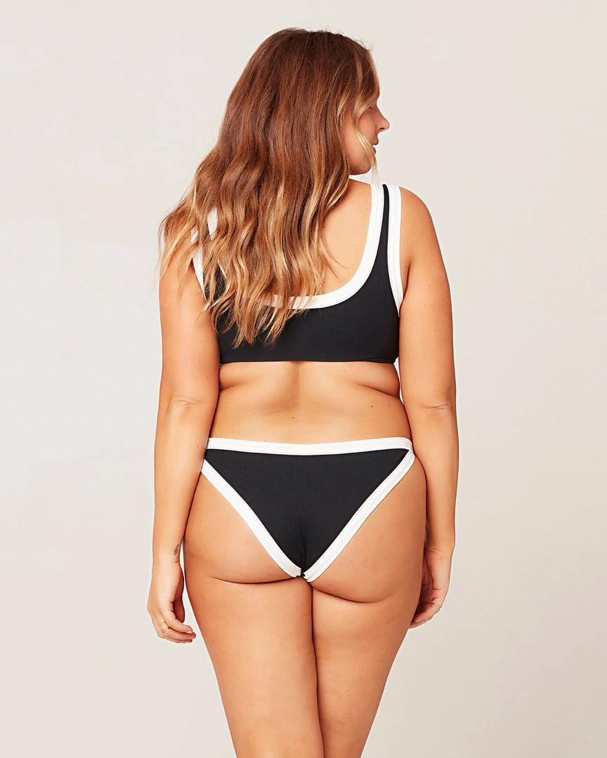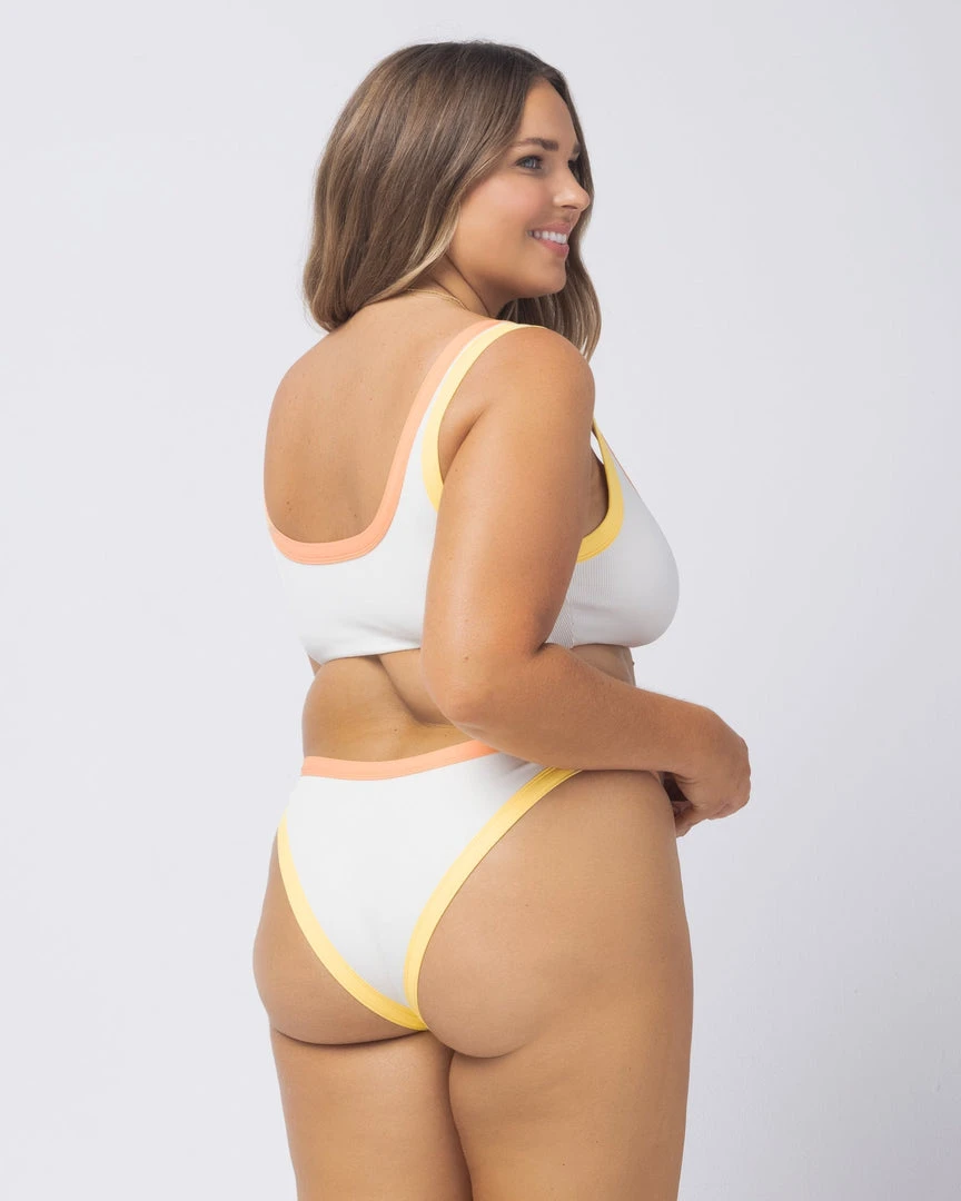 Bitsy bikini in the front, classic coverage in the back. The Vacay Bottom is constructed from our best-selling ribbed fabric. Multi-tone color blocking gives it a little sporty edge.