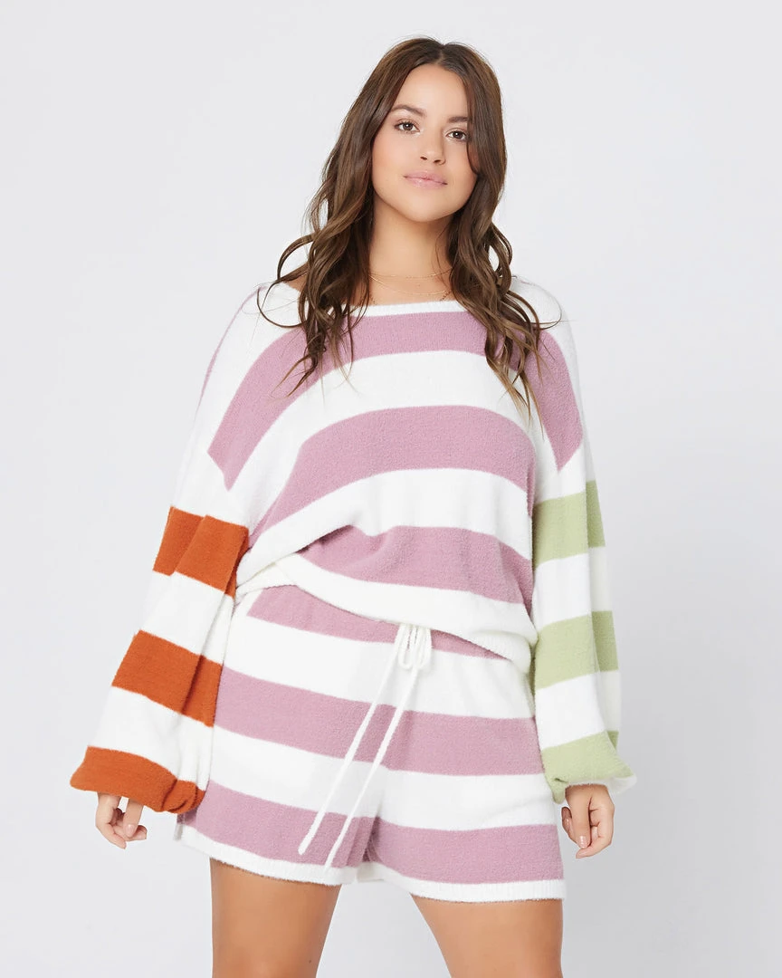 The Sequoia Sweater is effortlessly cute and beyond comfy. Featuring color blocked stripes and a relaxed fit, pair with the Sequoia Short for a matching loungewear set.