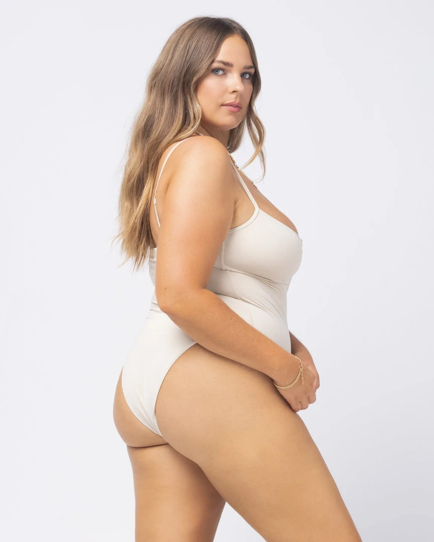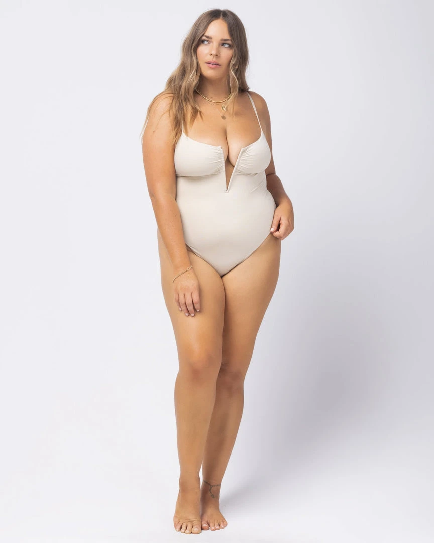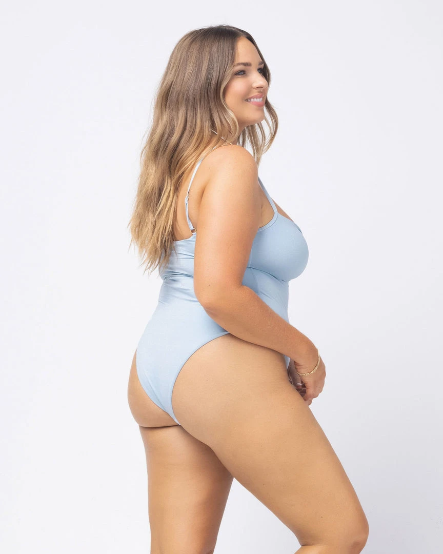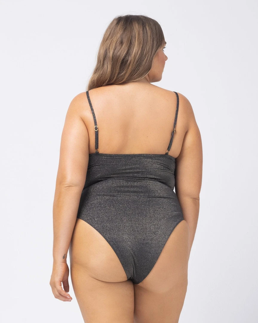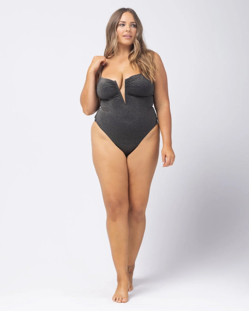 Main character energy only in the Shimmer Roxanne. Designed with bitsy coverage, a deep v with wire front, and adjustable straps, this one-piece was made to show off.