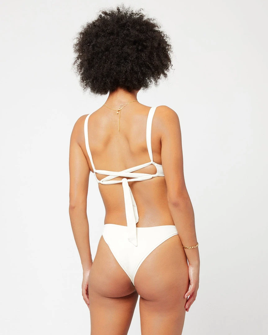 All of your support wishes are granted with our Camellia Bikini Top! Constructed with underwire, thick supporting straps, and a lace-up back for a truly customized fit.