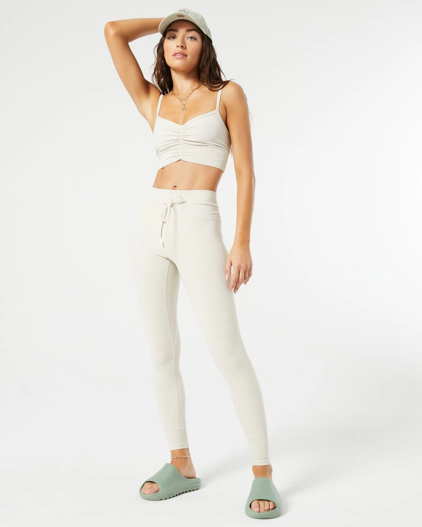 Keep it comfortable and cute throughout the day with the Turner Legging. Constructed of rib fabric and featuring cover stitching over the seams, this legging also includes a silicone tipped draw cord detail at the waistband . Pair it with the Soren Top for an optimal active look.