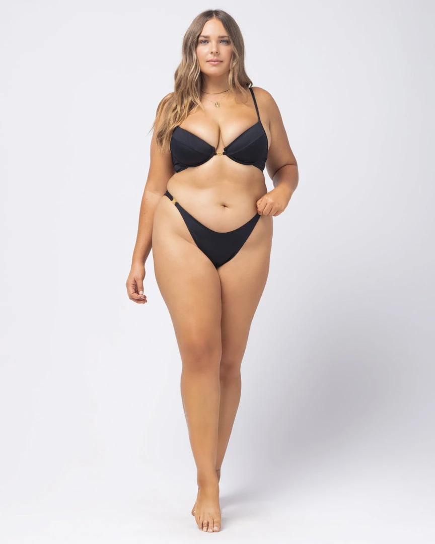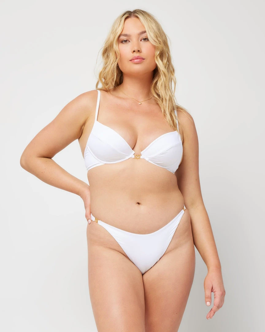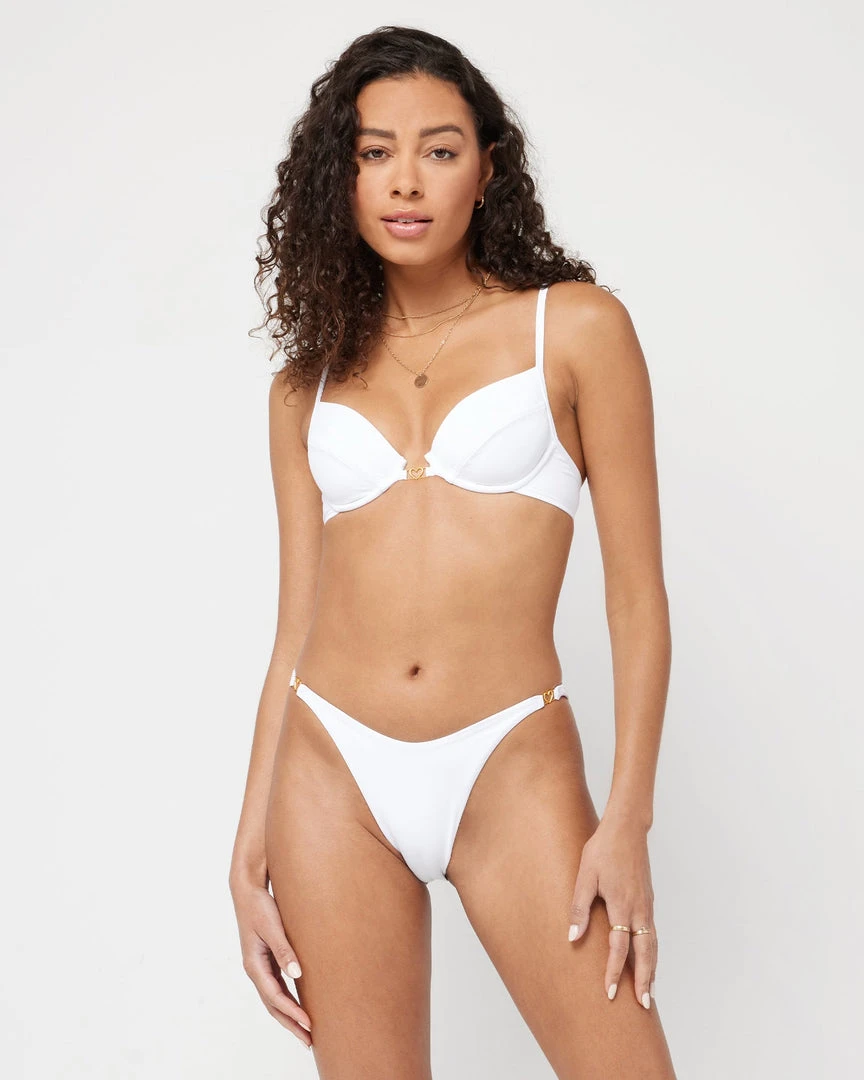 Cut with a high leg, the Ziggy Bikini Bottom features a curved waistband with heart charms on the hips. Make it a love match with the Stardust Top.